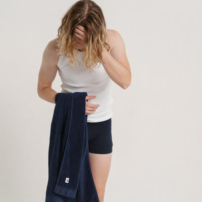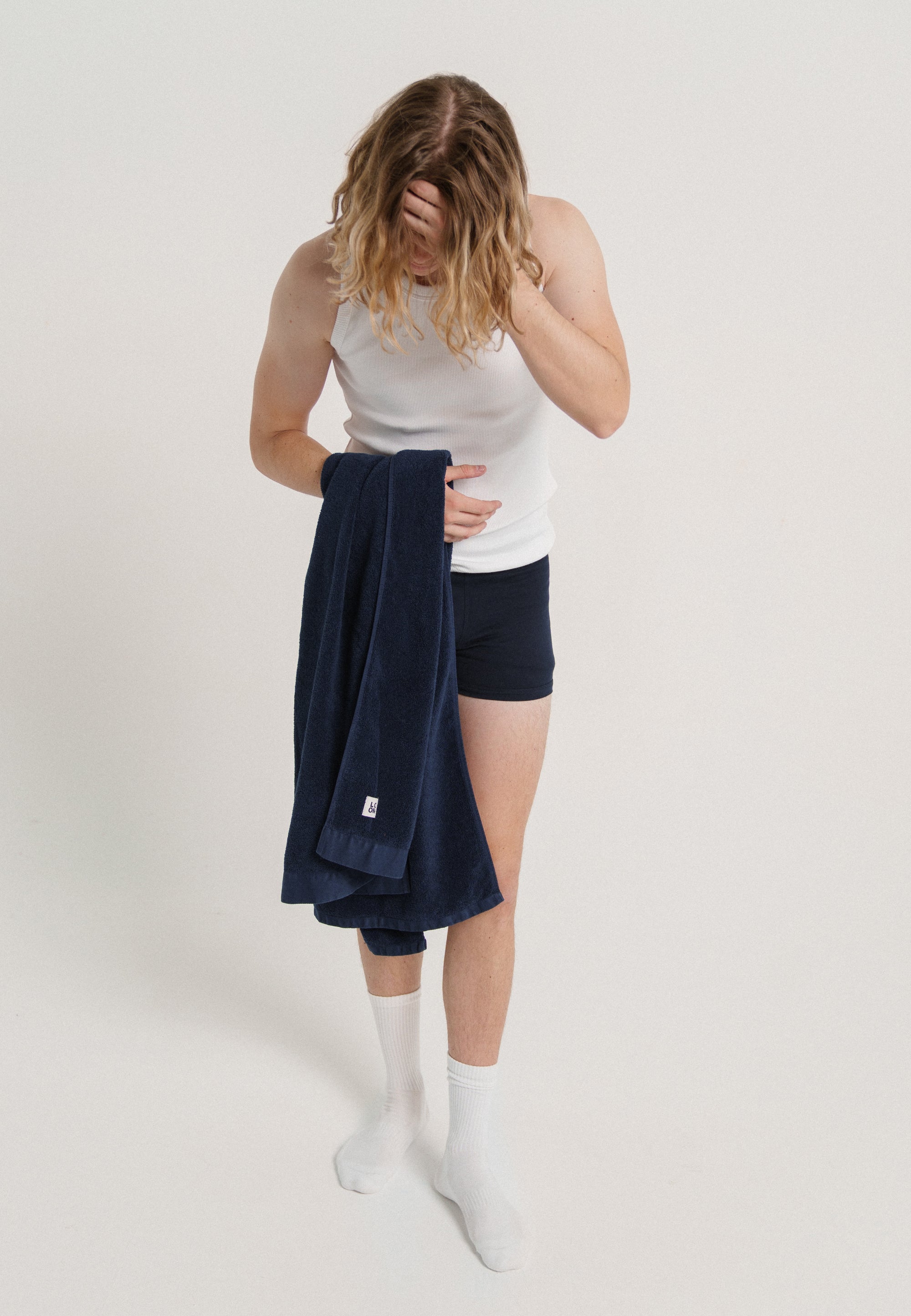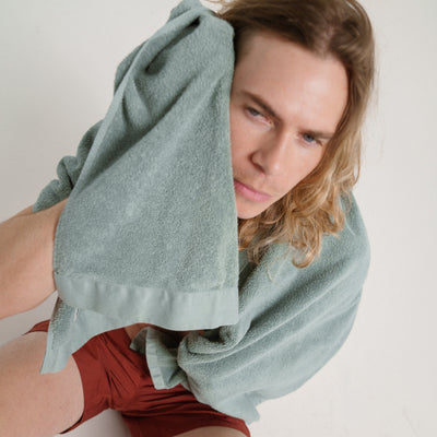 Notre serviette est disponible en 3 tailles : la plus petite est plutôt pensée pour les cheveux (on appelle cela le “format invité”), la moyenne est pour le corps (format aussi appelé "drap de douche") et la plus grande, c'est si vous aimez être bien enveloppé (taille "drap de bain").