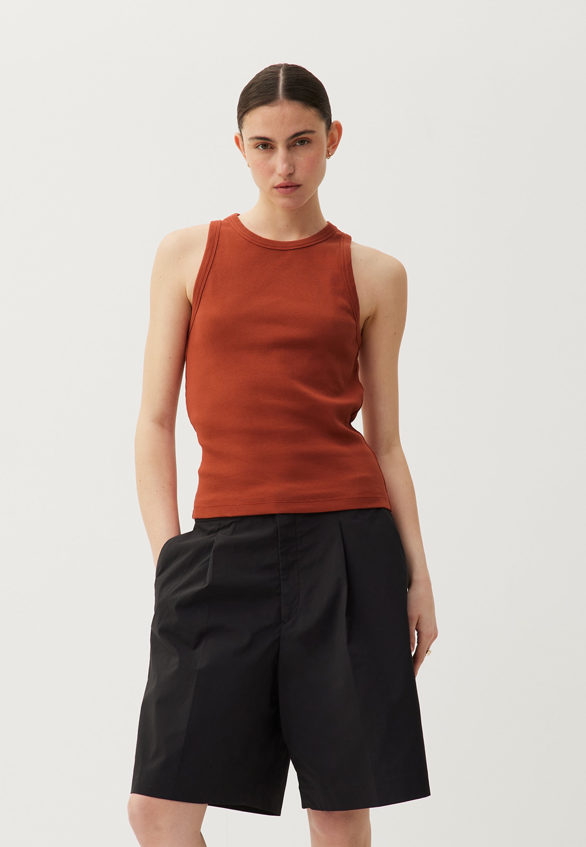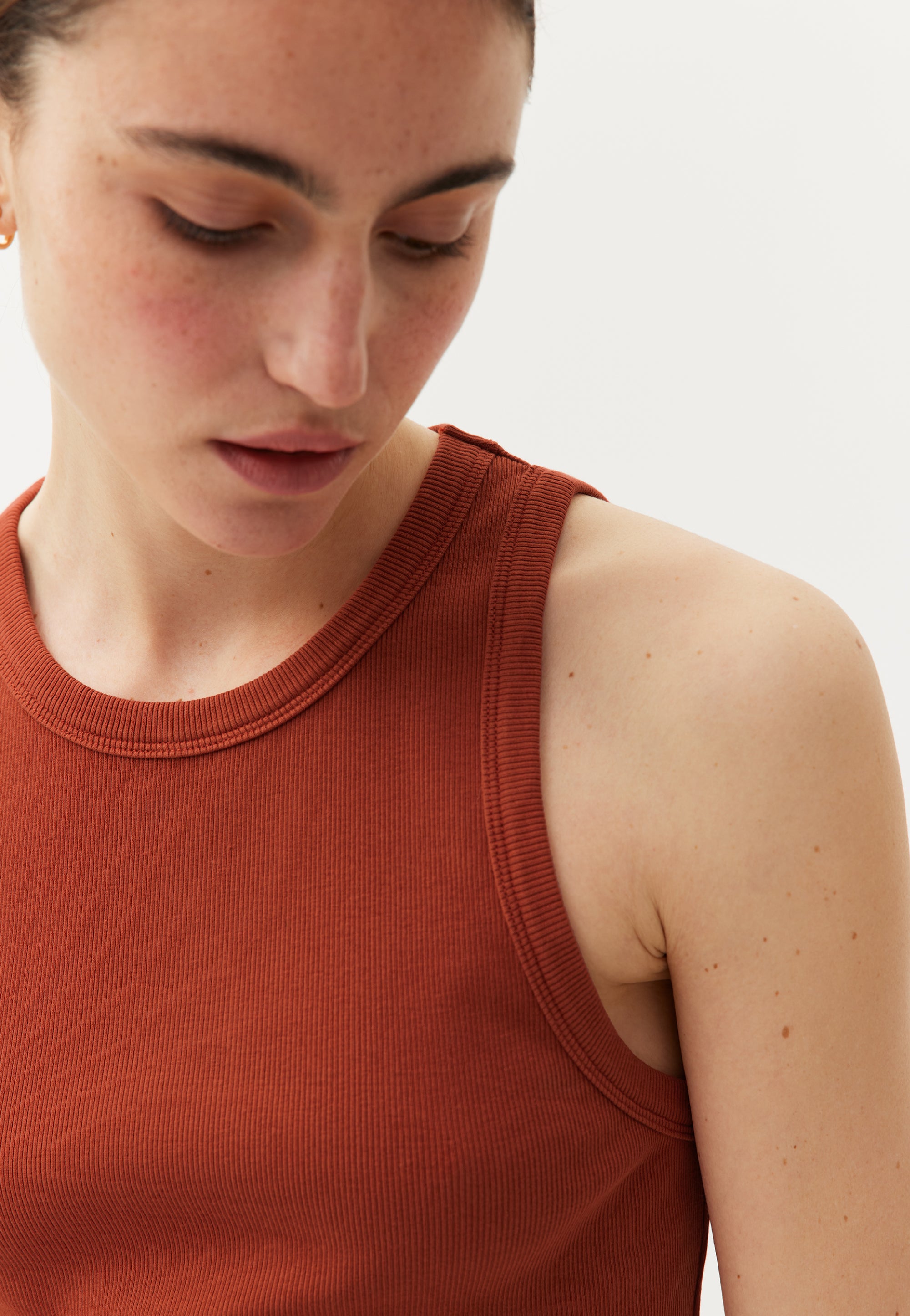 Un débardeur doux grâce à son coton bio peigné, confortable grâce à l’élasticité de son tricot côtelé, et résistant grâce à un fil d'élasthanne de gros diamètre qui empêche la déformation. À porter avec ou sans soutien-gorge (promis, le blanc n’est pas transparent), sous une chemise pour donner de la profondeur à votre tenue, ou tout seul pour un déménagement ou un déjeuner sur l’herbe : les occasions ne manquent pas de montrer vos beaux bras.