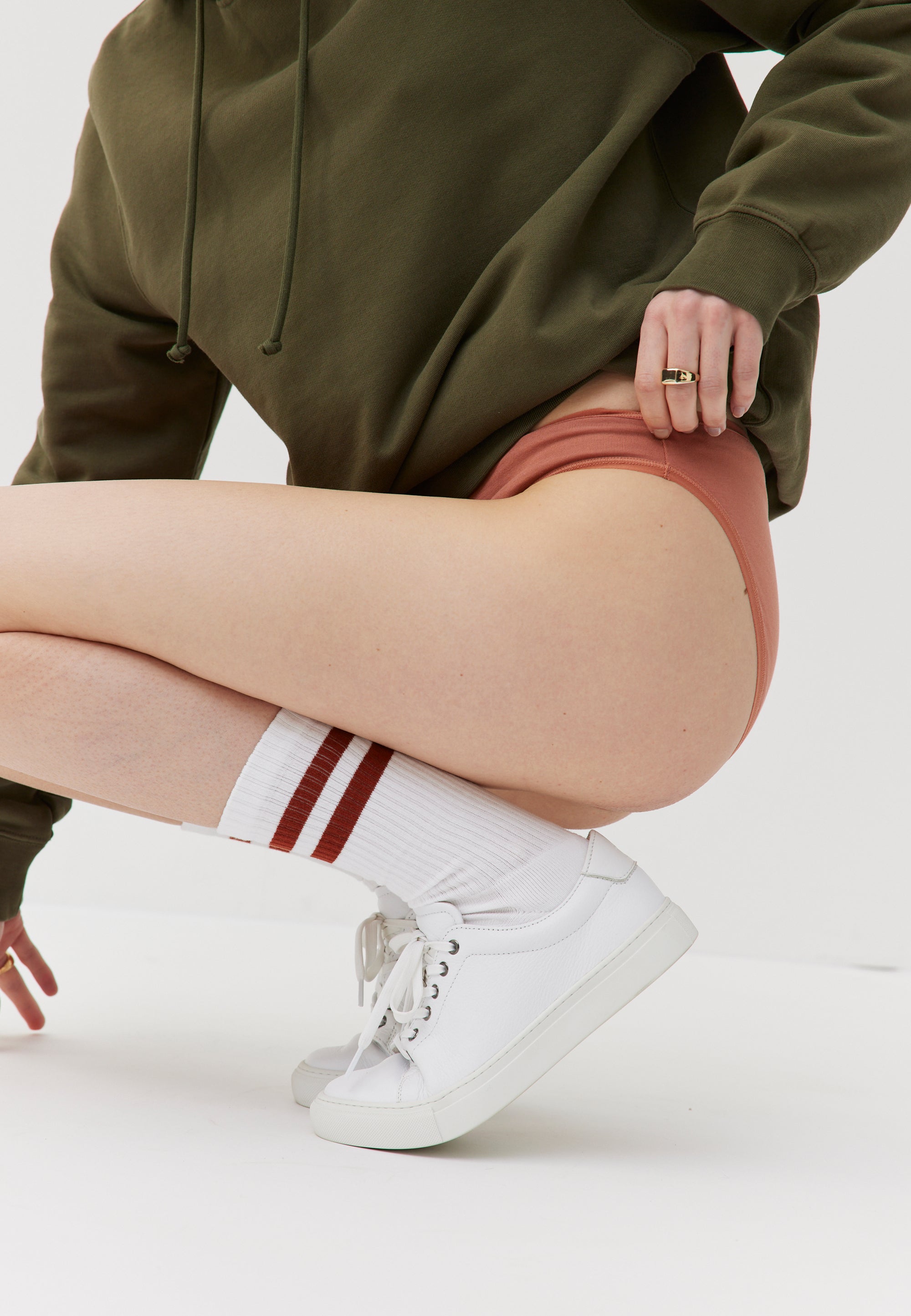 C’est la toute première génération de notre culotte. Pour la construire, on s'est basé sur un questionnaire où vous avez été plus de 700 à nous répondre, et on a utilisé le même (super) tissu que le boxer homme, éprouvé depuis déjà deux ans.