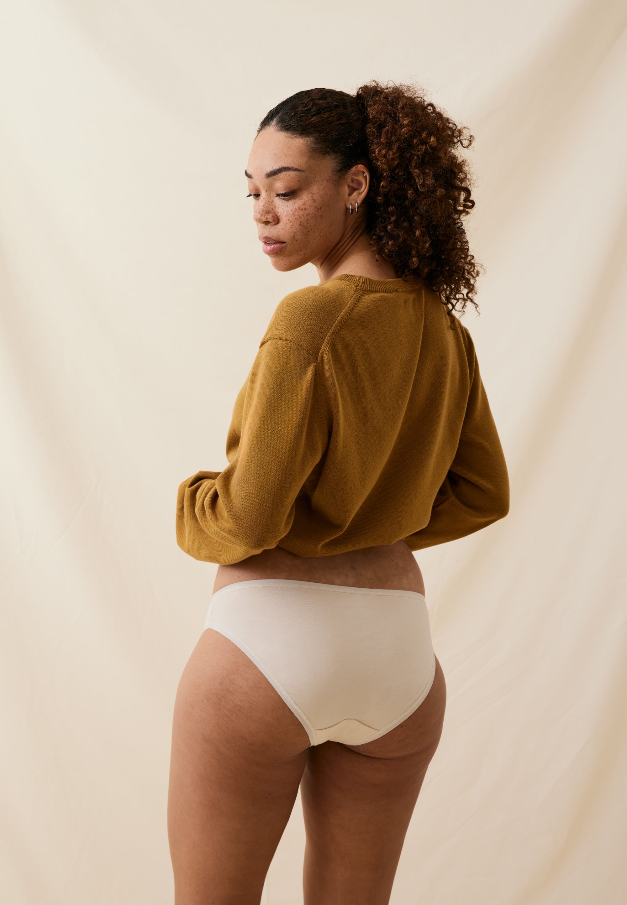Si la culotte vous apparaît un peu brillante au départ, c'est normal aussi : cet aspect légèrement soyeux est due à la finesse des fibres de coton qui lui donnent sa douceur et sa résistance. Mais pas d'inquiétude, cette brillance a tendance à disparaître au fur et à mesure des lavages.