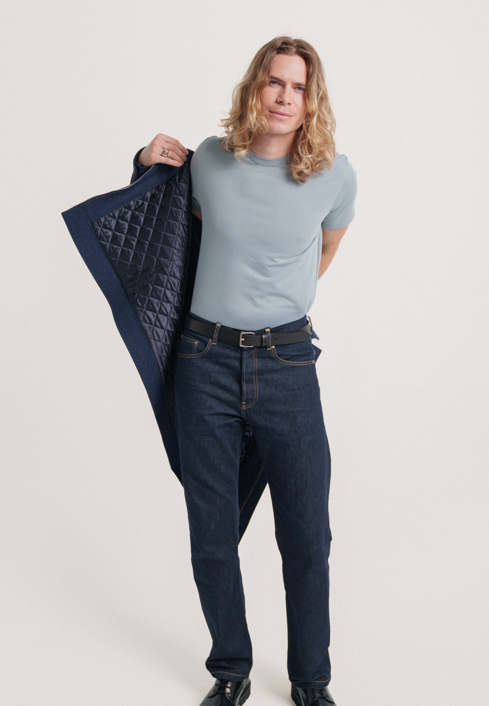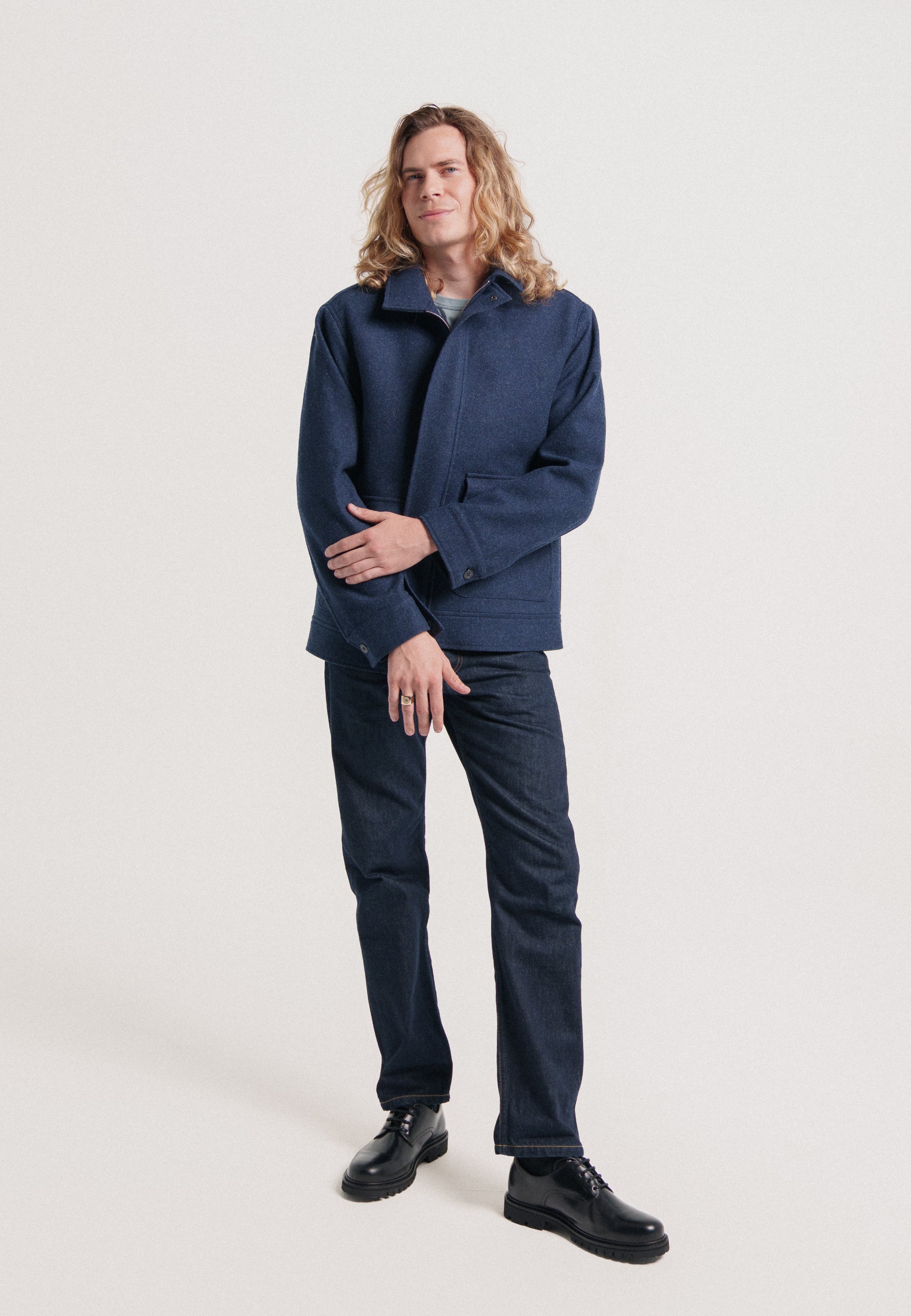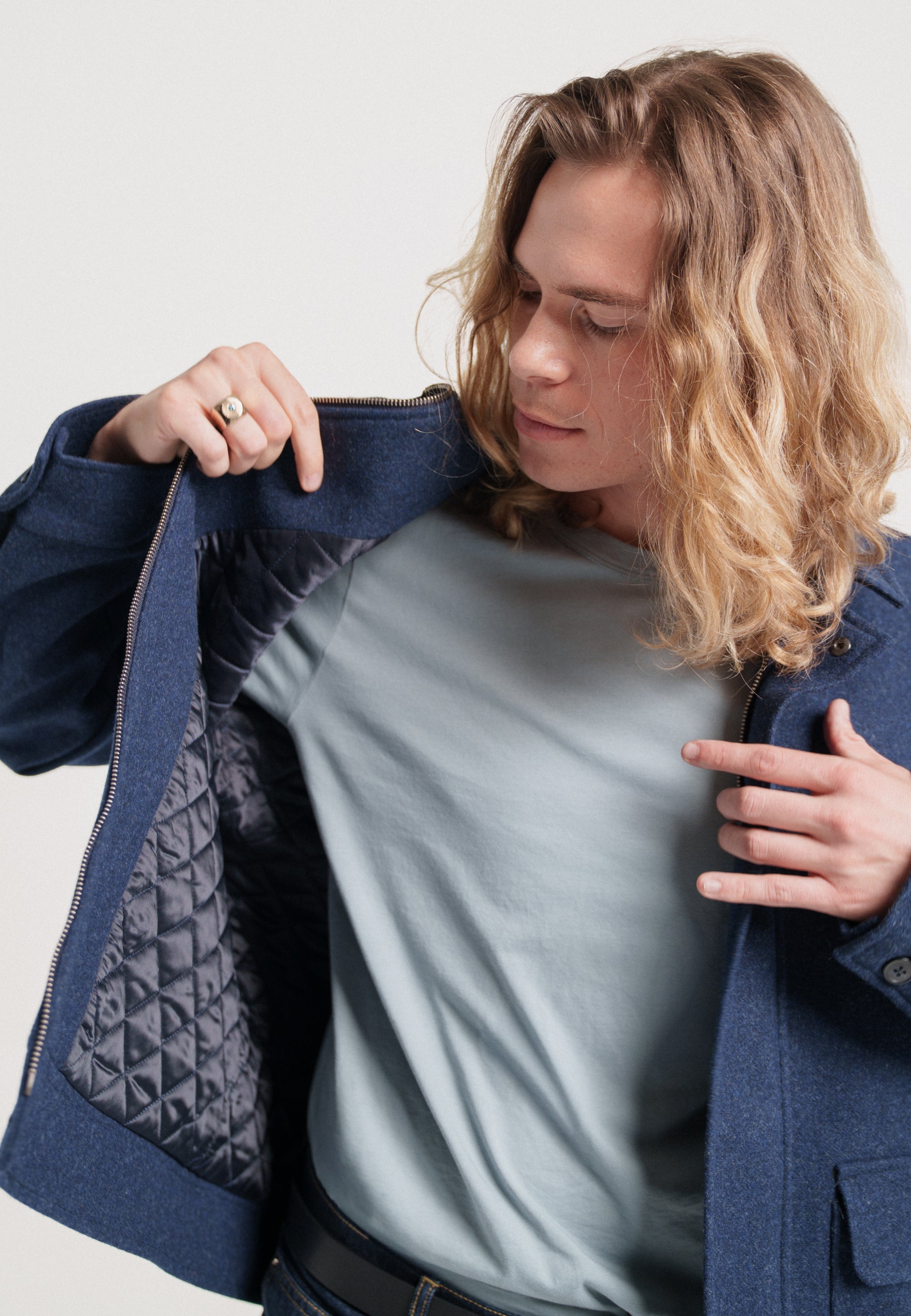 Tenir chaud sans entraver les mouvements : voilà la mission qu’on a confiée à ce manteau d’hiver. Pour la chaleur, on est parti d’un drap 100% laine, dense et doux, avec une doublure intérieure matelassée. Pour vous laisser bouger, on a dessiné une coupe droite et courte (d’où le nom “blouson”) pour facilement enfiler un sac à dos ou enfourcher un vélo.
