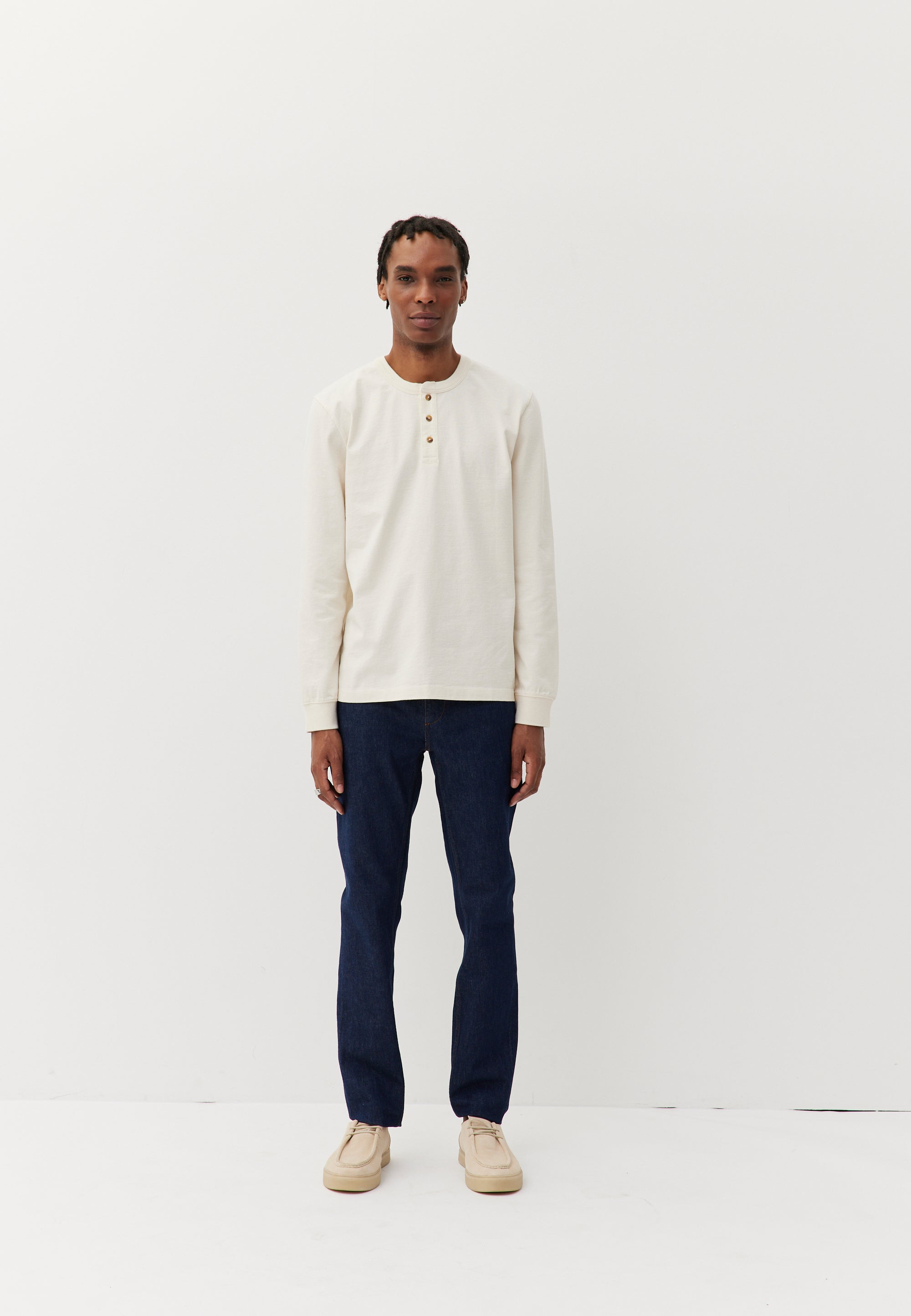 Le Henley, c’est ce beau t-shirt manches longues, version baroudeur avec son col boutonné. Pour qu’il ne vous lâche pas avant longtemps, on a développé une matière robuste avec un joli grain un peu irrégulier, on a fixé les boutons solidement et on a ajouté des bord-côtes sur les manches pour éviter qu’elles se détendent. Le tout 100% coton bio et made in Portugal. Parce que sous ses airs de (vêtement) costaud, il y a un cœur qui bat.