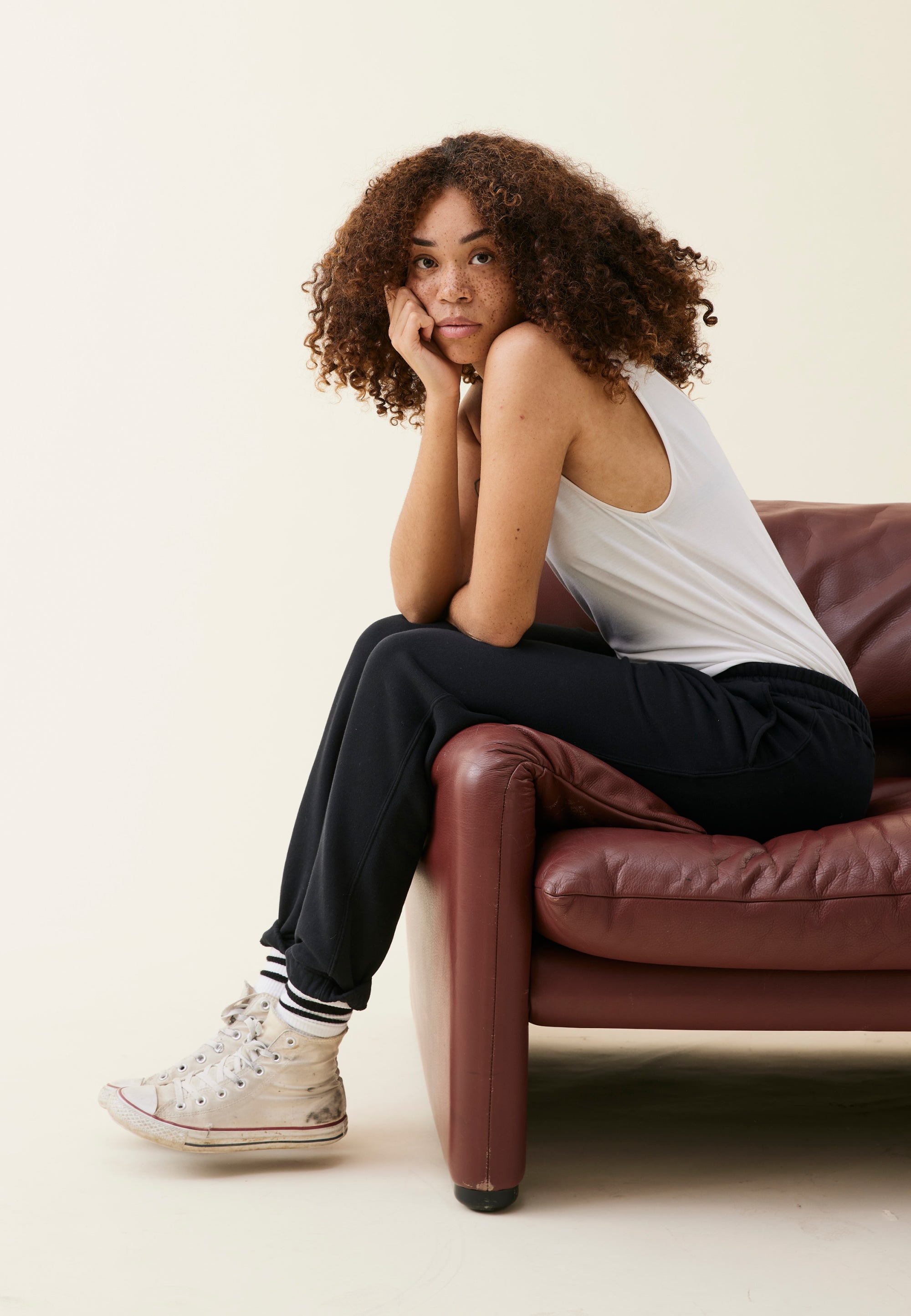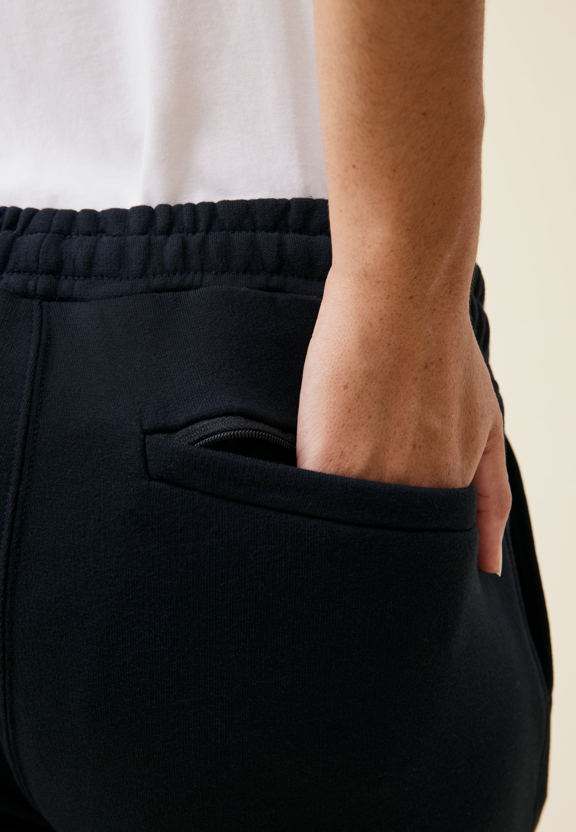 Nous avons dessiné ce jogging pour qu’il puisse être porté à la salle comme à la ville – en d’autres termes, pour qu’il soit confortable et stylé. Jambe pas trop serrée, taille élastiquée, cordon blanc contrasté… et notre petite touche en plus : un tissu qui se tient. On a développé une matière dense (330g/m2) en coton bio avec 10% de polyester pour éviter la déformation aux genoux. Bonus : une poche zippée à l'arrière, pour vos clefs ou votre CB.