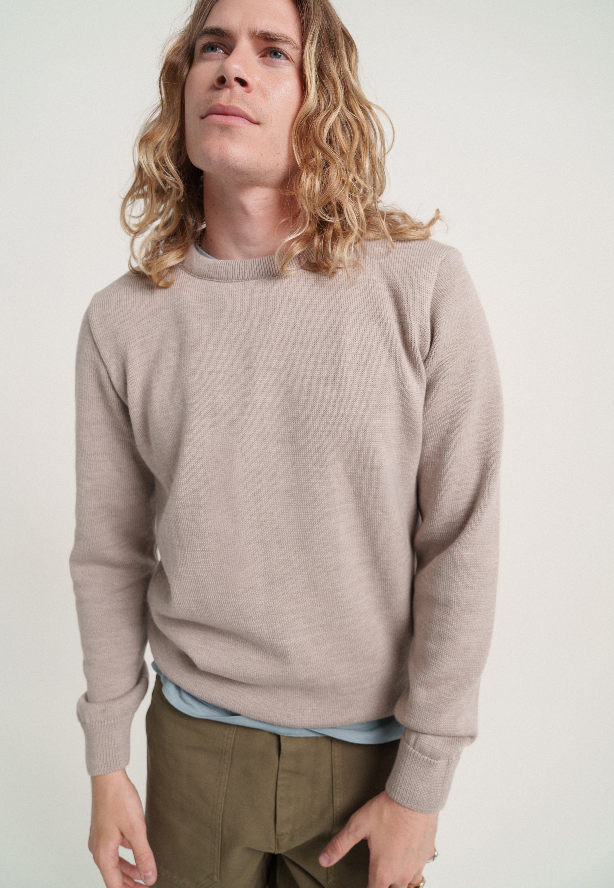 Pourquoi la laine tient chaud ? Parce qu’elle emprisonne près de 80 % d'air dans ses fibres, ce qui fait d’elle le meilleur isolant naturel. Notre pull est tricoté avec 3 fils torsadés (en jauge 7, si vous aimez les détails techniques) : voilà 600g qui vous aideront à passer l’hiver.
