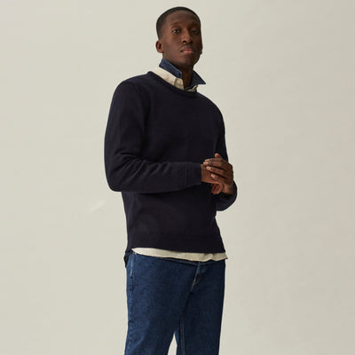 Le pull “zéro risque”. Aucun risque style avec sa coupe classique. Aucun risque d’avoir froid avec sa matière 100% laine bien épaisse. Aucun risque qu’il gratte grâce aux fibres extra-fines de la laine mérinos. Et aucun risque de “OH NON IL A PERDU 3 TAILLES EN MACHINE À LAVER” : notre laine est traitée pour ne pas feutrer* au lavage.