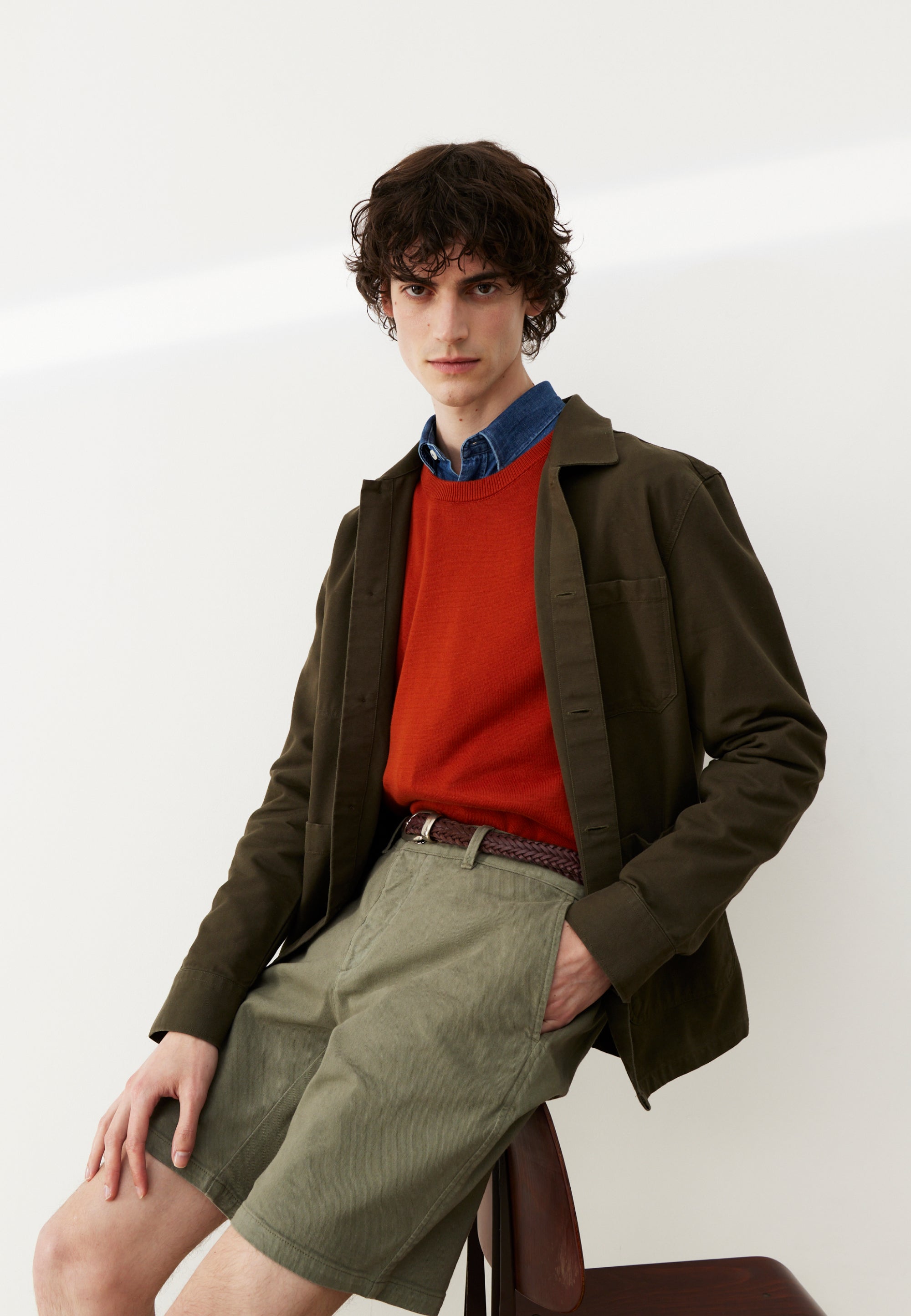 Un bermuda à la coupe droite indémodable (qui s’arrête juste au-dessus du genou) avec un beau tissu en sergé de coton bio, assez épais pour résister au temps et ne pas trop froisser. Contrairement à ce qu'on fait d'habitude, ce short est teint après fabrication : cette technique du “garment-dyed” donne un aspect vintage pour que la couleur patine joliment avec les expositions au soleil, les lavages et les après-midi à la plage. Bonus : bouton type « jeans » qui ne se découd pas, couture d’entrejambe doublée contre les craquages et poche arrière zippée pour les clés.
