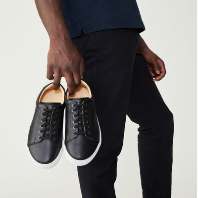La plupart des marques de basket (comme une célèbre à trois bandes) utilisent du cuir recouvert, avec un aspect un peu “plastique”. Son avantage ? Il s’érafle un peu moins vite. Son problème ? Il est moins respirant et surtout, il craque plus vite au niveau des plis. On a préféré un cuir “pleine fleur” moins recouvert et donc plus respirant. Conséquence : sur la version blanche, des éraflures pourront apparaître un peu plus vite que la moyenne. Mais rien d’irréversible (contrairement aux craquelures) : ces baskets dureront longtemps si vous les entretenez régulièrement (et promis, ce n'est pas très compliqué).