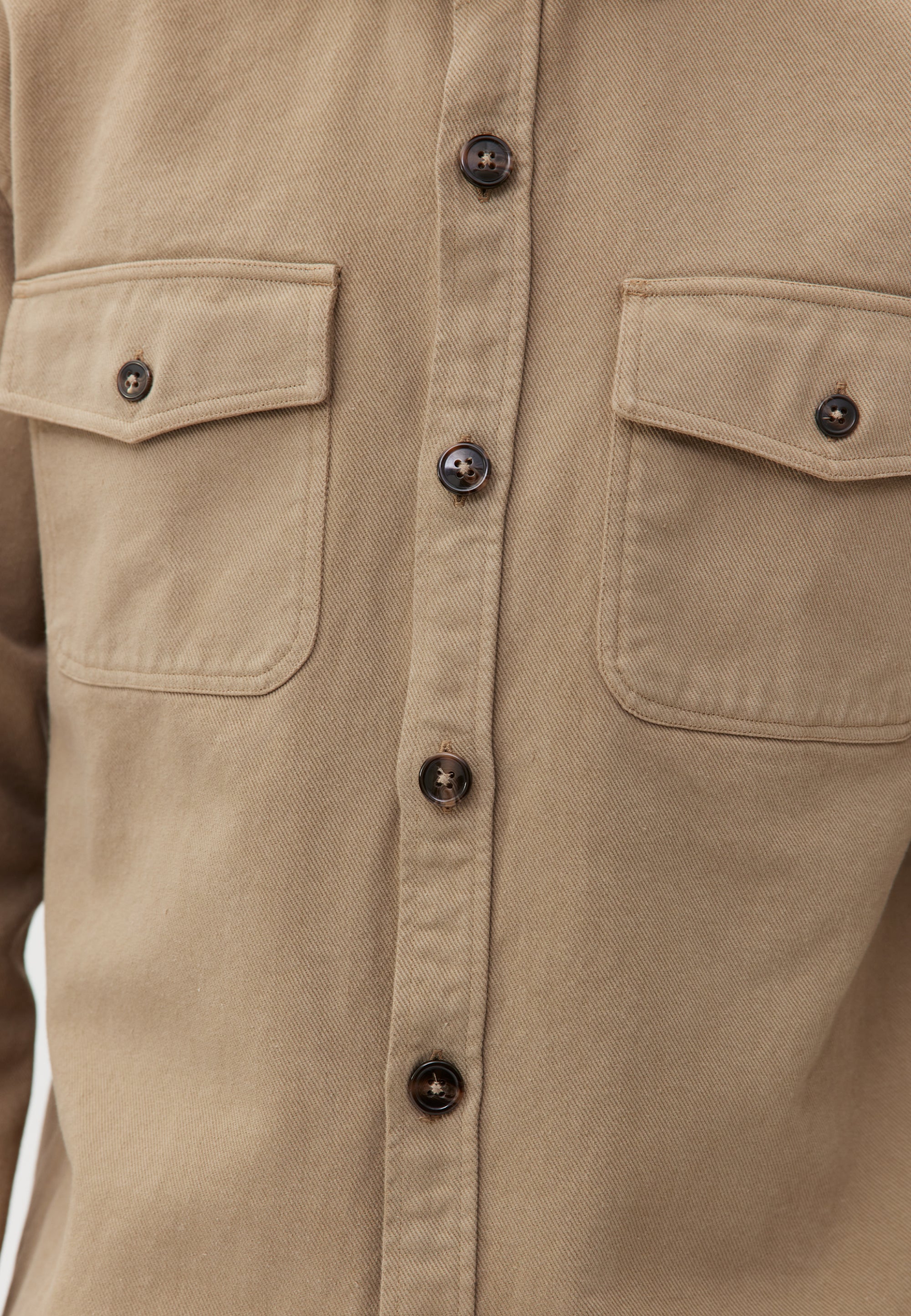 Le twill, c’est un tissu particulièrement robuste dont l’armure dessine un motif en diagonale – comme pour les jeans par exemple. Avec ce twill fabriqué dans les Vosges, ses deux poches à rabat et sa couleur légèrement patinée, cette surchemise a un petit côté workwear qui vous donnera un look décontracté (et conviendra parfaitement à votre flegme naturel).