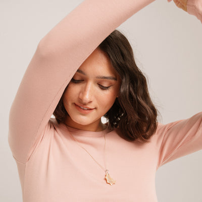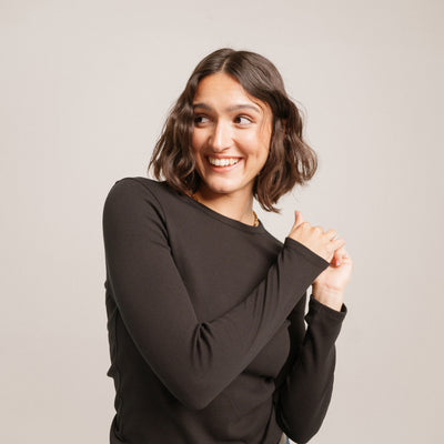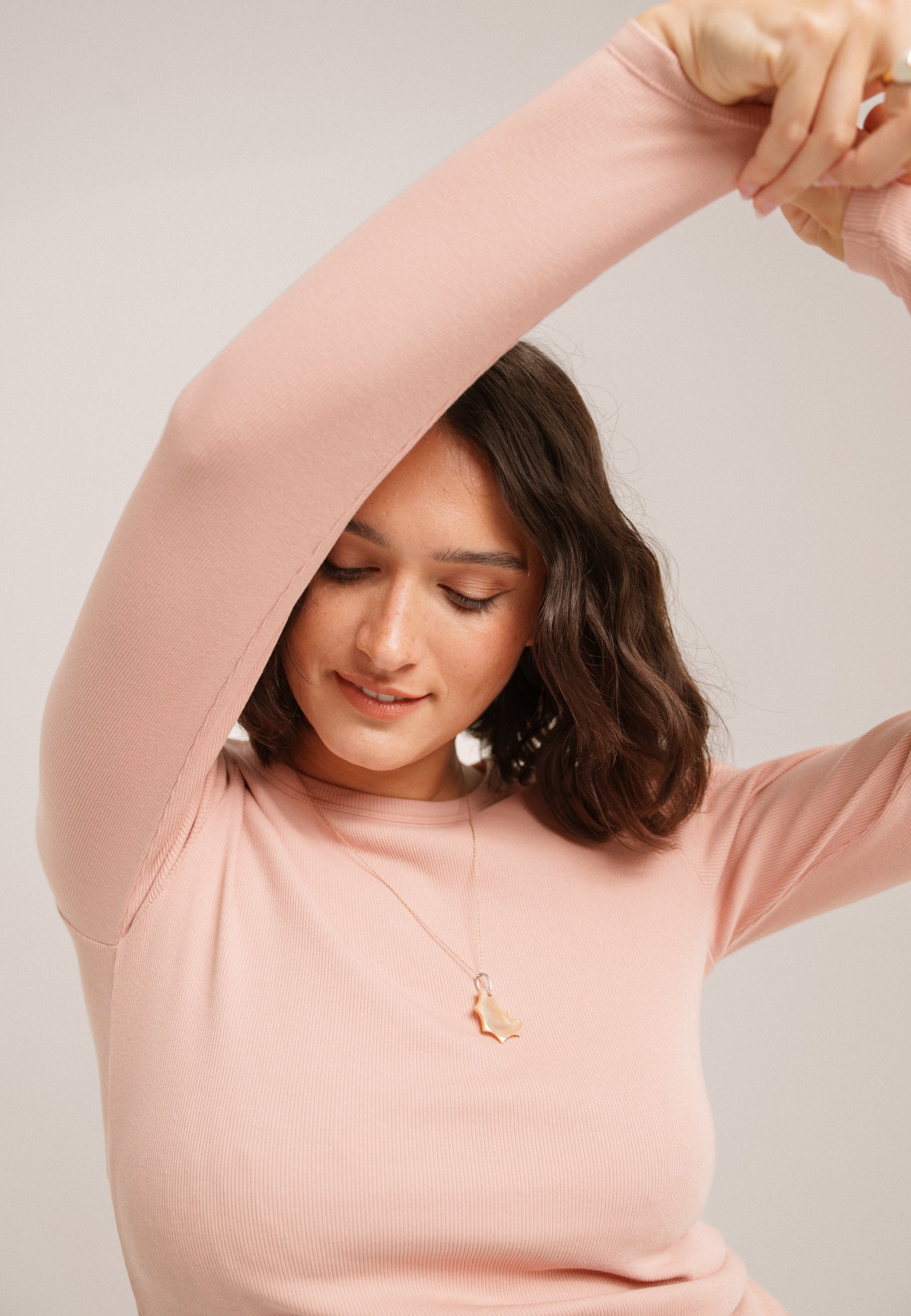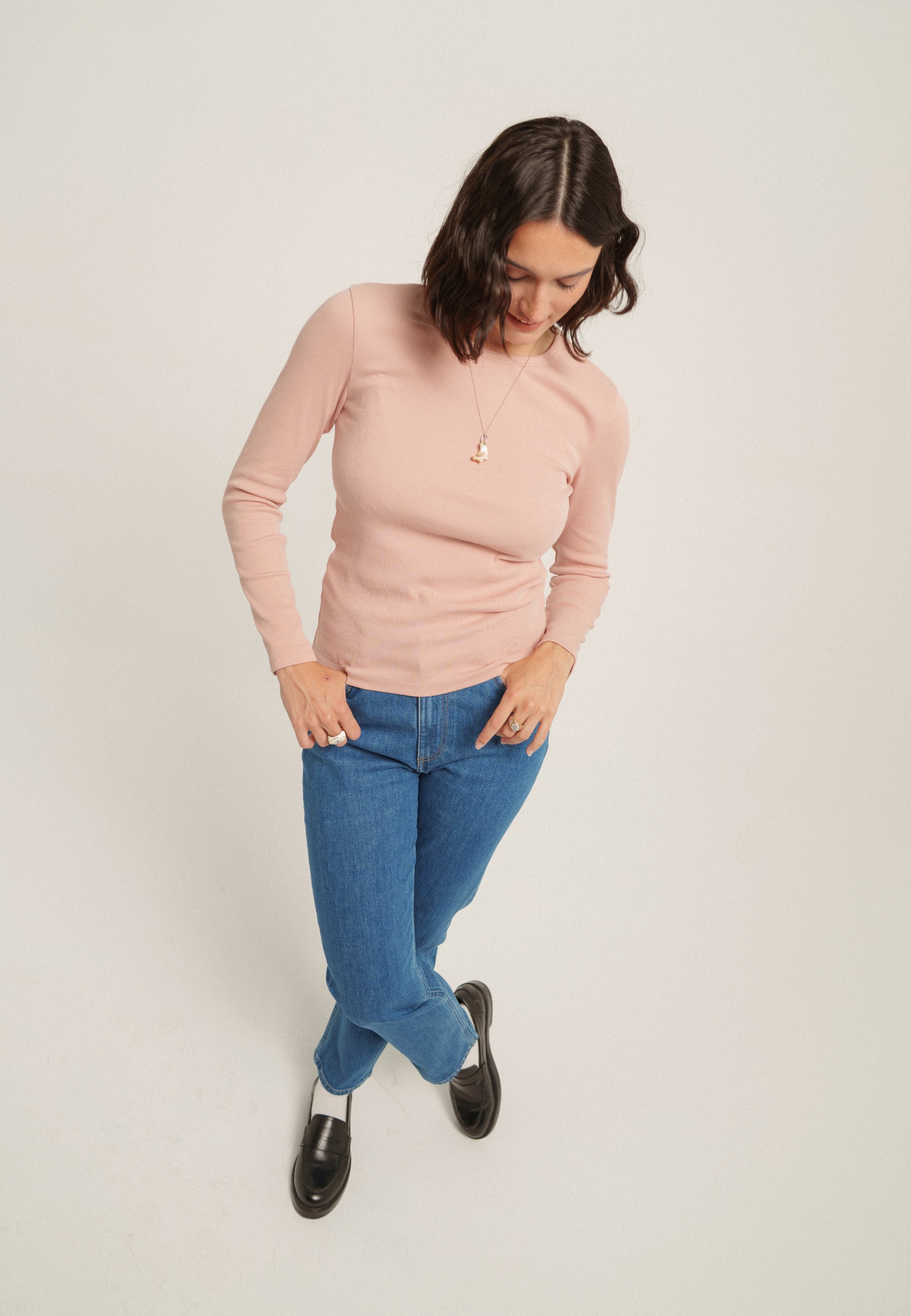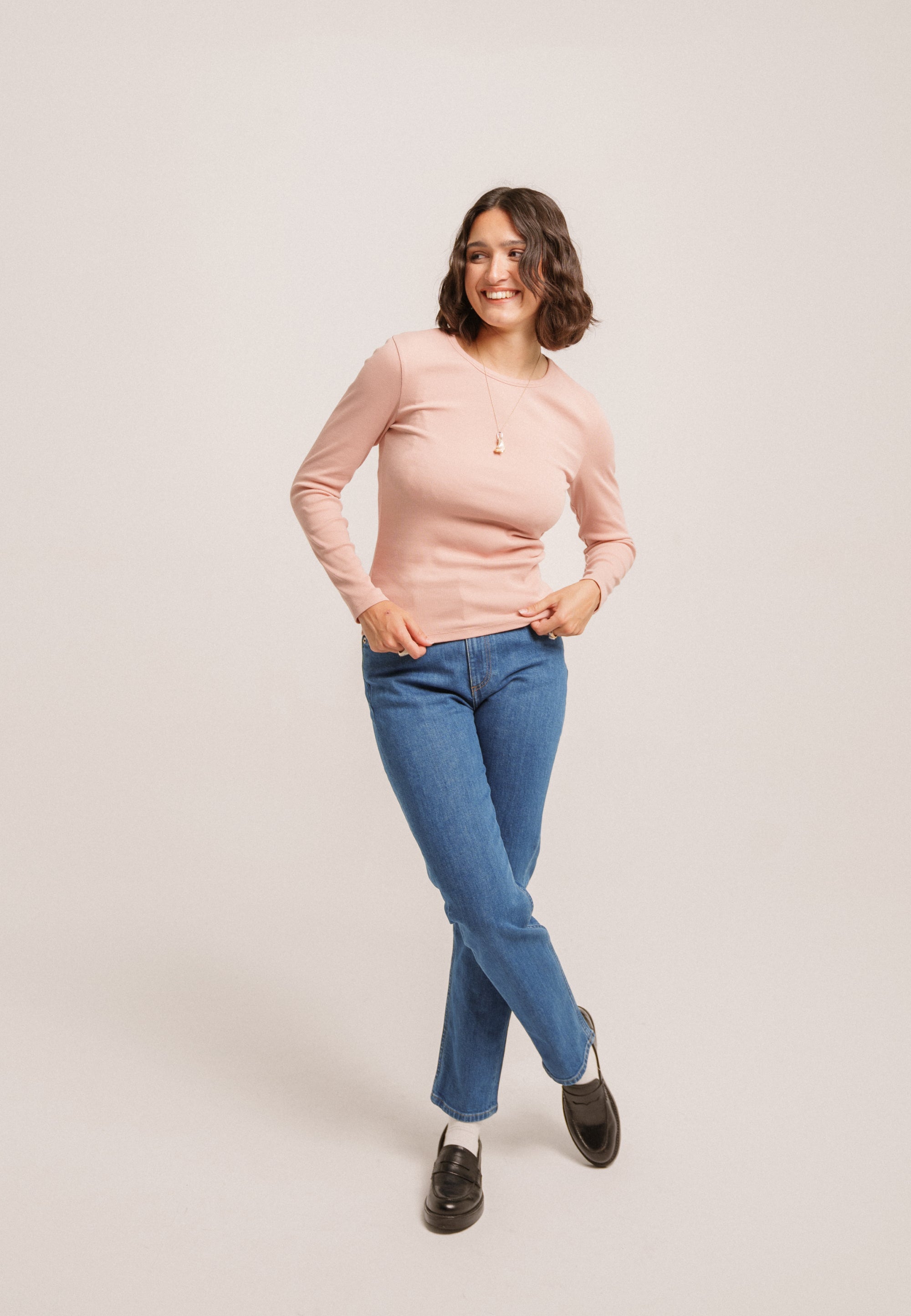 C’est la première génération de notre t-shirt manches longues, mais on ne part pas de zéro : on a repris la même matière que notre débardeur côtelé (étudiée pour ne pas se déformer).