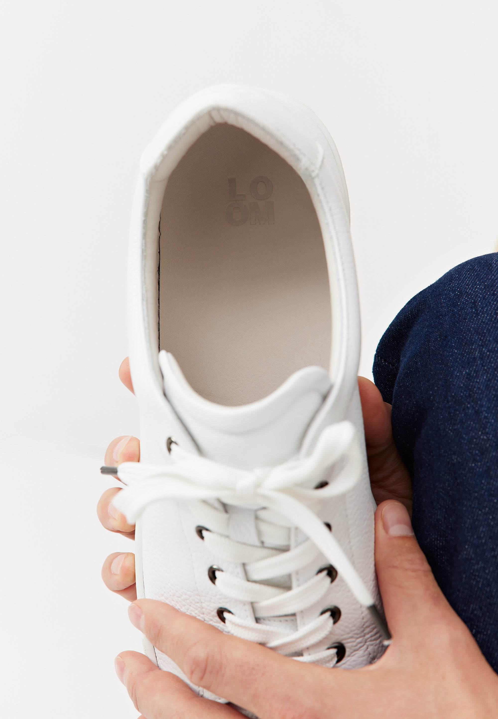 La deuxième chose à comprendre, c’est que le blanc, c’est salissant et qu'on verra les petites taches et éraflures plus facilement que sur une couleur foncée. D'ailleurs, sur notre cuir pleine fleur, ces éraflures pourront apparaître un peu plus vite que sur certaines baskets blanches dont le cuir est plastifié (comme celles d'une célèbre marque à trois bandes) mais qui vont craqueler plus vite au niveau des plis et durer au final moins longtemps. Pour nettoyer le cuir blanc, plein de tutos sont disponibles sur YouTube, mais pour être sûr de vous donner des conseils qui fonctionnent, on les a (presque) tous testés pour vous : voici sur ce lien le résultat avant/après sur des prototypes de baskets Loom.