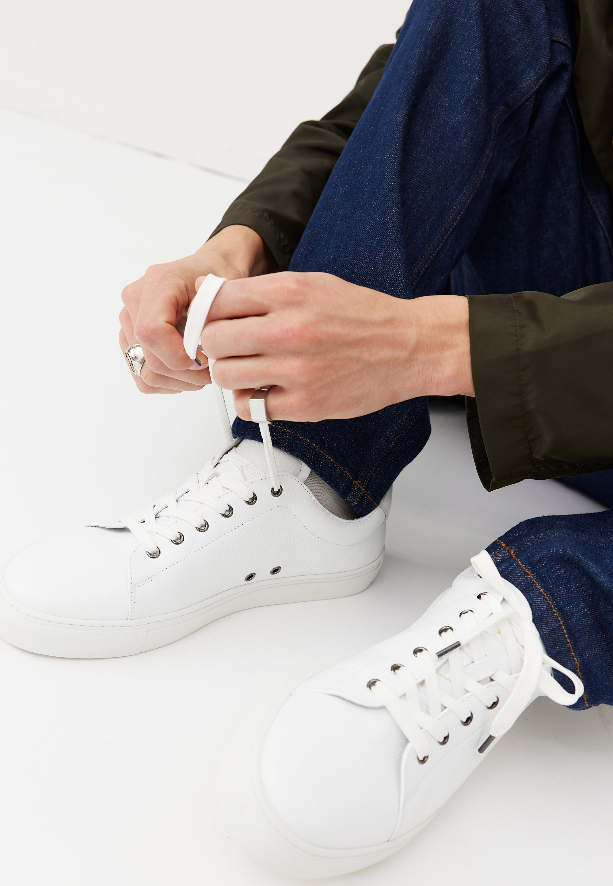 La plupart des marques de baskets (comme une célèbre à trois bandes) utilisent du cuir recouvert de plastique. Son avantage ? Il s’érafle un peu moins vite. Son problème ? Il est moins respirant et surtout, il craque plus vite au niveau des plis. On a préféré prendre un cuir “pleine fleur” plus naturel et plus respirant. Conséquence : sur la version blanche, des éraflures pourront apparaître un peu plus vite que la moyenne. Mais rien d’irréversible : ces baskets dureront longtemps si vous les entretenez régulièrement (et promis, ce n'est pas très compliqué).