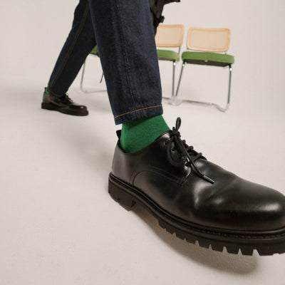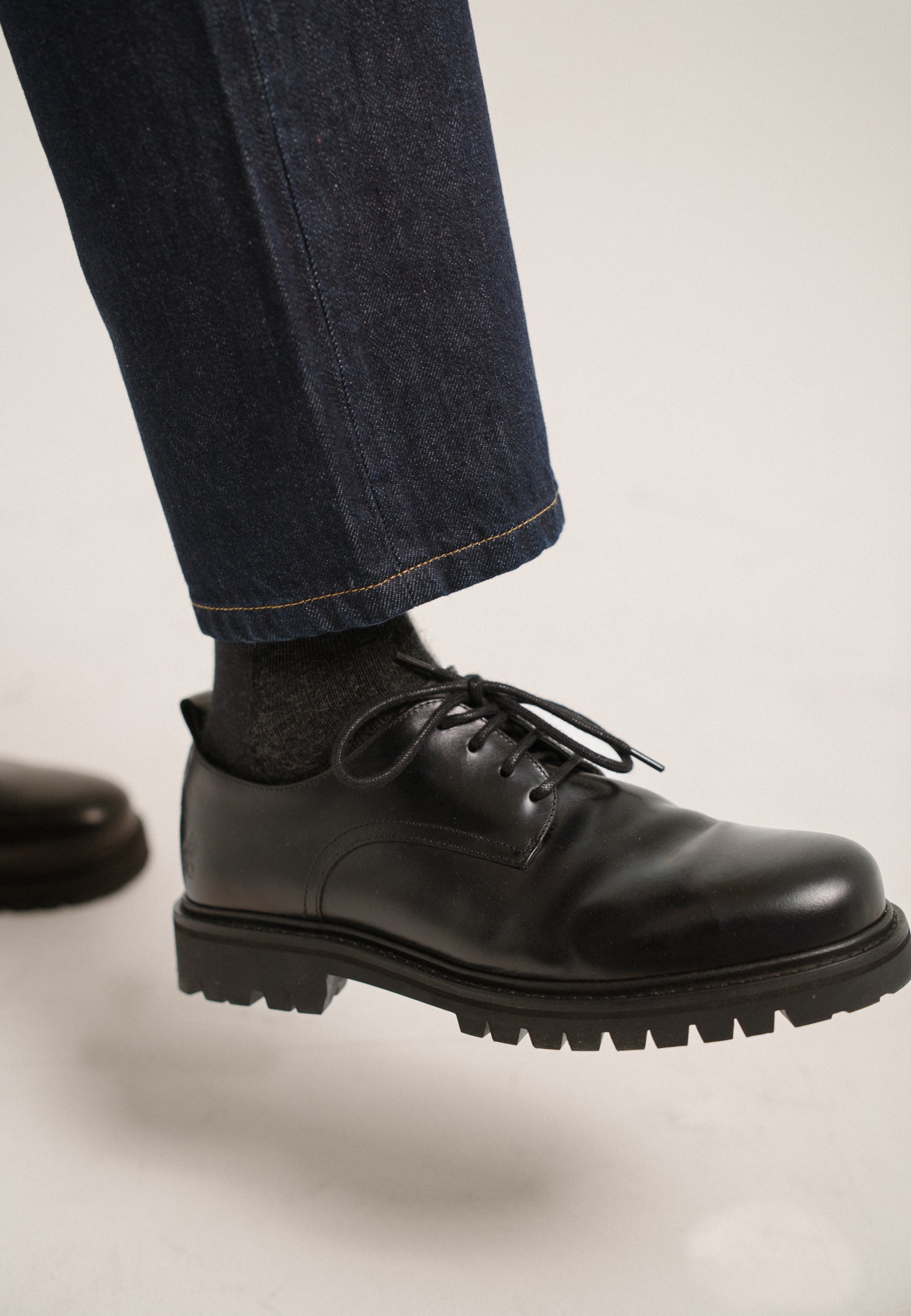 C’est la première génération de nos derbies, mais on ne part pas de zero : on a utilisé tout le savoir accumulé grâce à nos baskets (qu’on vend depuis 2020) sur le cuir, le taillant, la résistance des semelles, etc. Et puis on a porté nous-même ce modèle pendant plusieurs mois pour s’assurer qu’il est au niveau.