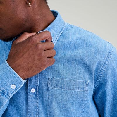 C’est la toute première génération de la chemise en jean. Pour la coupe et la confection, on s’est servi des retours des clients sur nos autres chemises.