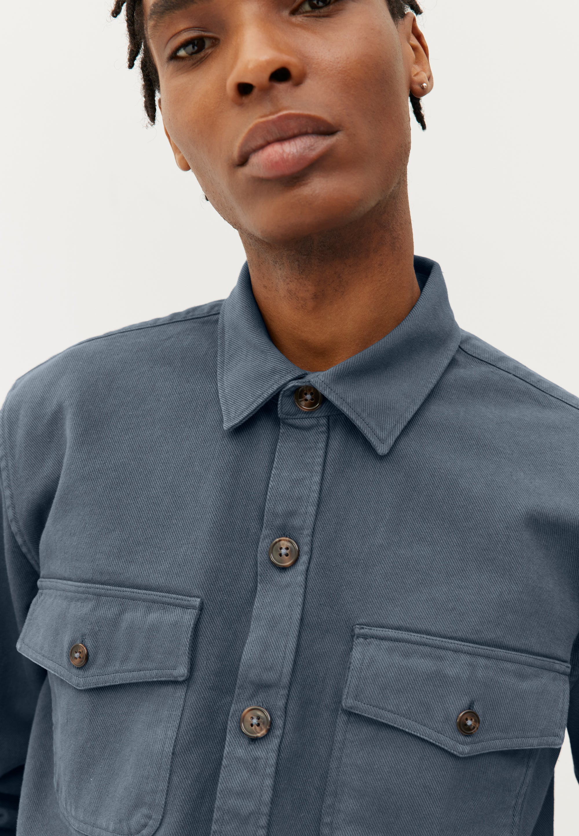Le twill, c’est un tissu particulièrement robuste dont l’armure dessine un motif en diagonale – comme pour les jeans par exemple. Avec ce twill fabriqué dans les Vosges, ses deux poches à rabat et sa couleur légèrement patinée, cette surchemise a un petit côté workwear qui vous donnera un look décontracté (et conviendra parfaitement à votre flegme naturel).
