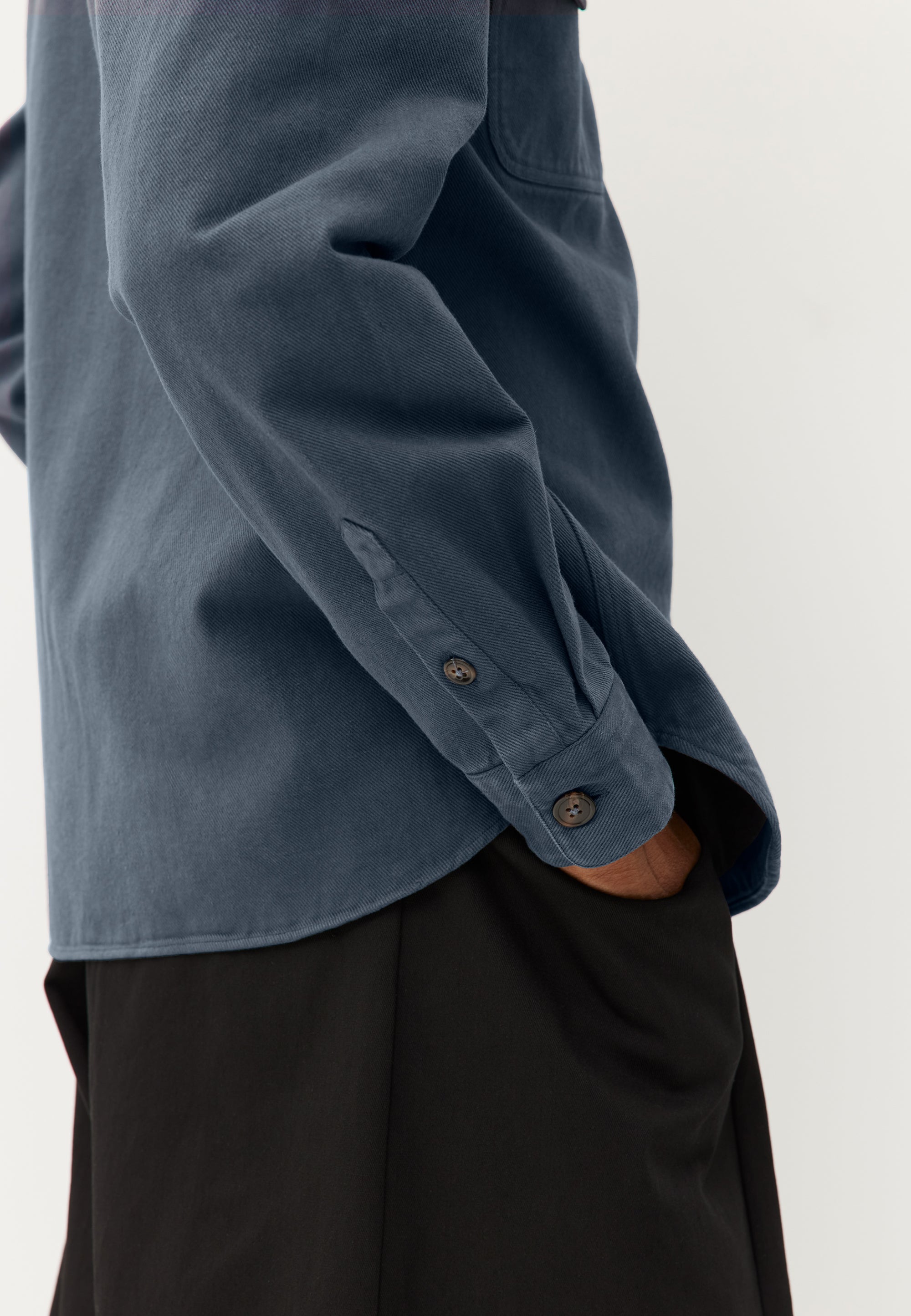 Cette surchemise va s’assouplir avec les lavages pour devenir de plus en plus confortable. La couleur va se patiner avec le soleil, les machines et le temps – ça rendra votre surchemise unique. L'aspect du tissu deviendra plus irrégulier et plus duveteux, avec les frottements et les machines.