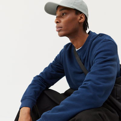 Un sweat robuste 100% coton bio, suffisamment dense pour ne pas se déformer, avec les manches renforcées pour ne pas se détendre et les couleurs travaillées pour bien se patiner avec les années. L’intérieur est gratté - ça veut dire « tout doux » - pour garder la chaleur. Enfin, côté style, zéro risque : le col se pose proprement sur les épaules, la coupe légèrement ample fait de belles épaules et il est super facile à assortir - avec votre jean de tous les jours ou avec votre pantalon « pour les mariages » (oui, vous en avez un).