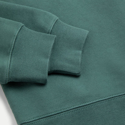Notre expérience nous l’a appris : sur du coton, les couleurs unies passent avec le temps. On a essayé d’utiliser des teintures qui tiennent mieux (et polluent plus), mais on se rend compte que c’est comme la quête de la jeunesse éternelle - c’est impossible et ça ne rend pas heureux. Alors on a changé de stratégie : ce sweat, il ne restera pas éternellement jeune mais on a fait en sorte qu’il vieillisse bien, comme ces beaux modèles américains qu’on trouve dans les magasins vintages. Pour ça, on a choisi des couleurs qui patinent joliment et une filature “open-end” qui donne au tissu un toucher brut sur l'extérieur… et tout doux sur la face en contact avec votre peau.
