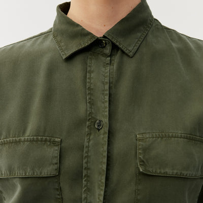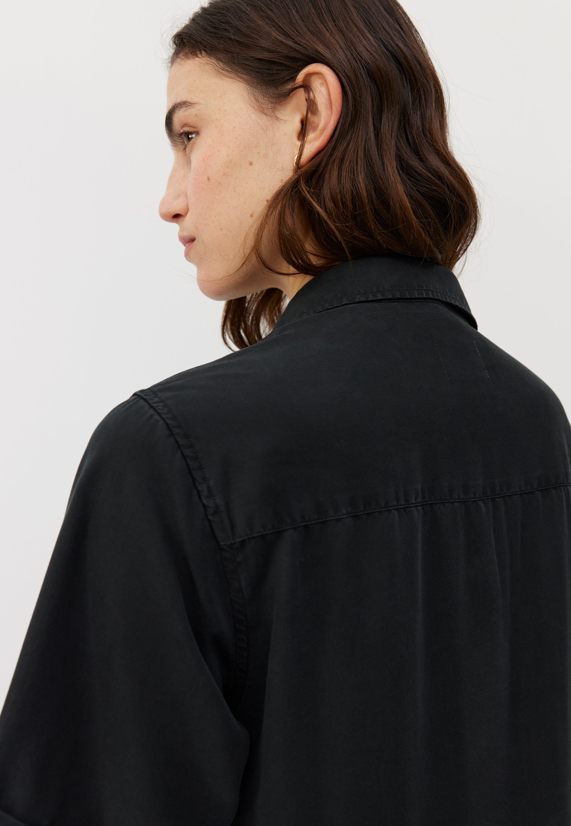 De la soie, oui, mais en plus robuste : c’est le vrai avantage du Tencel. Vous pourrez vous asseoir sur un banc ou lancer une machine sans prendre mille précautions. Et les détails sont aussi pensés pour tenir le coup : boutons solidement fixés, points d’arrêt sur les coutures des poches, coutures double-aiguille sur les côtés, teinture garment dyed pour une meilleure patine avec le temps et prélavage en usine pour ne pas qu’elle rétrécisse.
