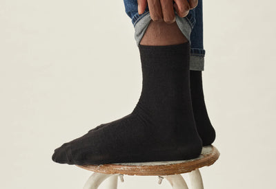 Ces chaussettes sont en laine pour tenir chaud, mais assez fines pour être portées avec toutes vos chaussures. D’habitude, la pointe et le talon sont renforcés avec du Nylon. Nous, on a choisi du Cordura – une fibre issue du monde militaire, quatre fois plus résistante à l'abrasion. Et pour qu’elles restent en place sans étrangler votre mollet, l'élastique est large et en structure “nid-d'abeilles”. Elles ne vous lâcheront pas de sitôt, vous pouvez dormir sur vos deux orteils oreilles.