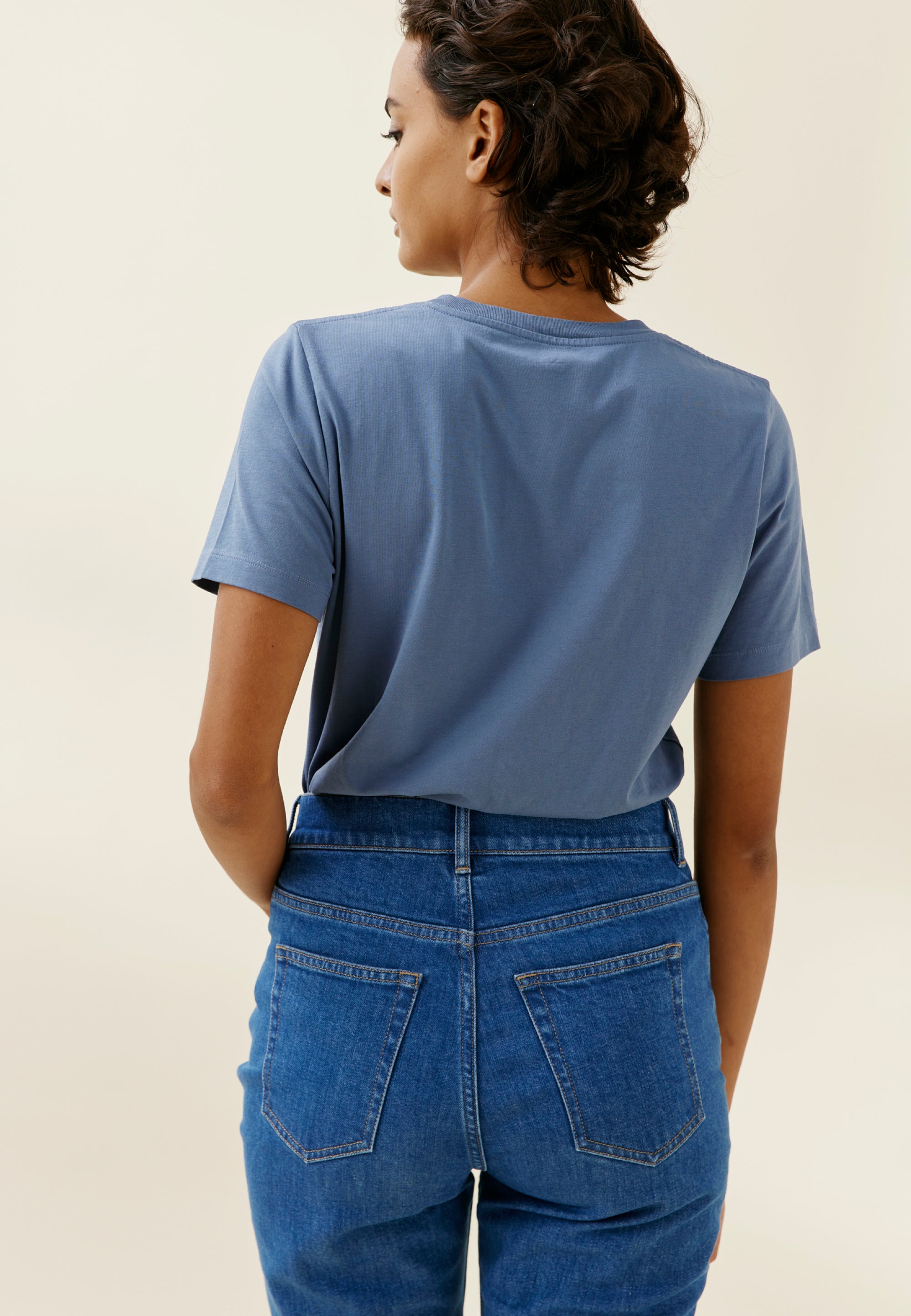 Le classique du vestiaire, mais avec des détails qui comptent. Un col fin et pas trop ouvert pour l'élégance. Un tissu plutôt dense pour un joli tombé et pour limiter la déformation, les trous… et la transparence. Et parce que l'éthique, c'est au moins aussi important que la qualité, il est fabriqué au Portugal et 100% coton bio.