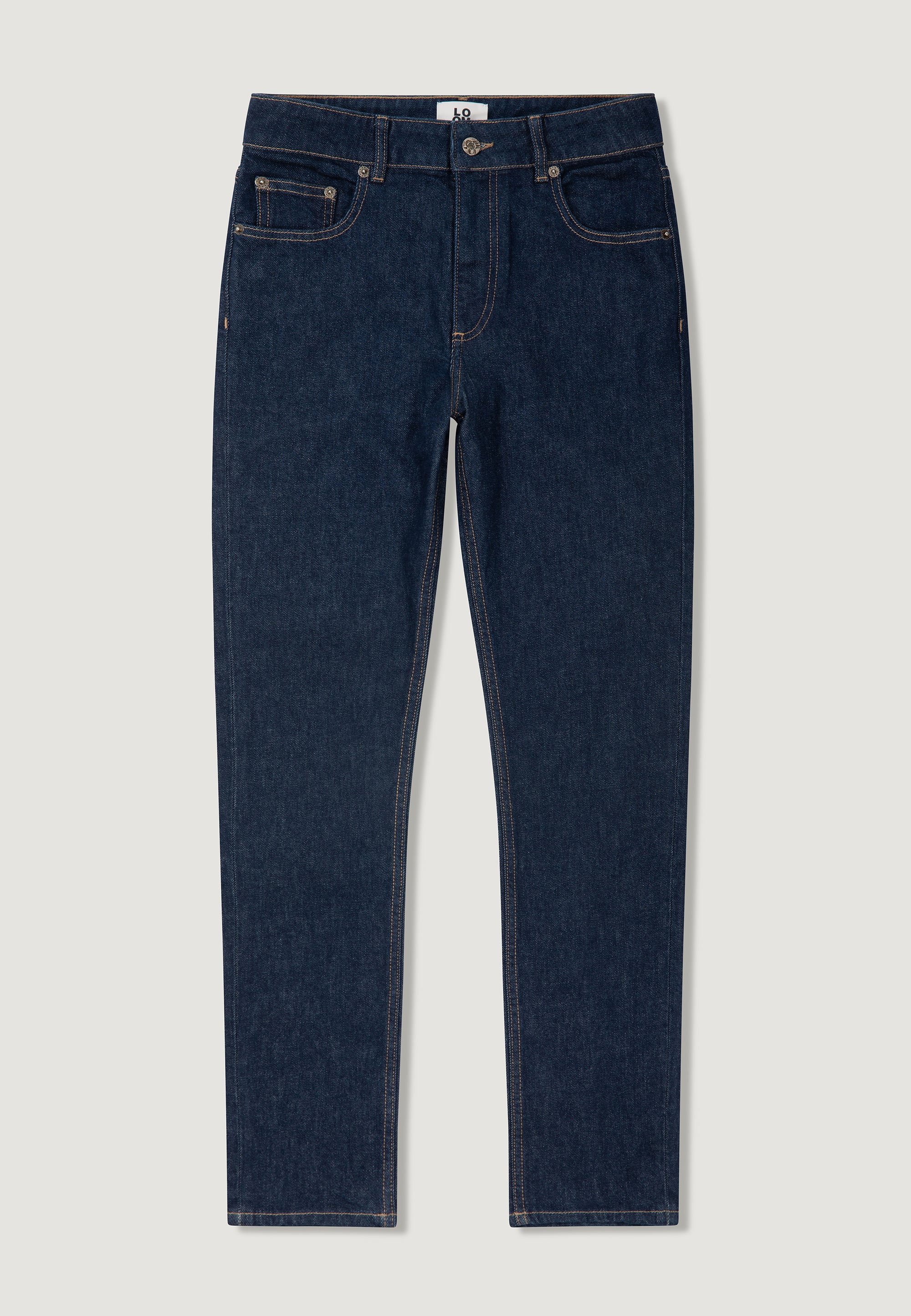 Pour ce jean, on a développé une coupe slim classique (si vous l’aimez moins ajustée, jetez un œil à notre jean droit) qui remonte un peu en dessous du nombril, dans un tissu confortable (grâce à sa pointe d'élasthanne). Bonne nouvelle numéro : il ne se détend quasiment pas - c’est sans doute ce qui fait que vous le garderez longtemps.