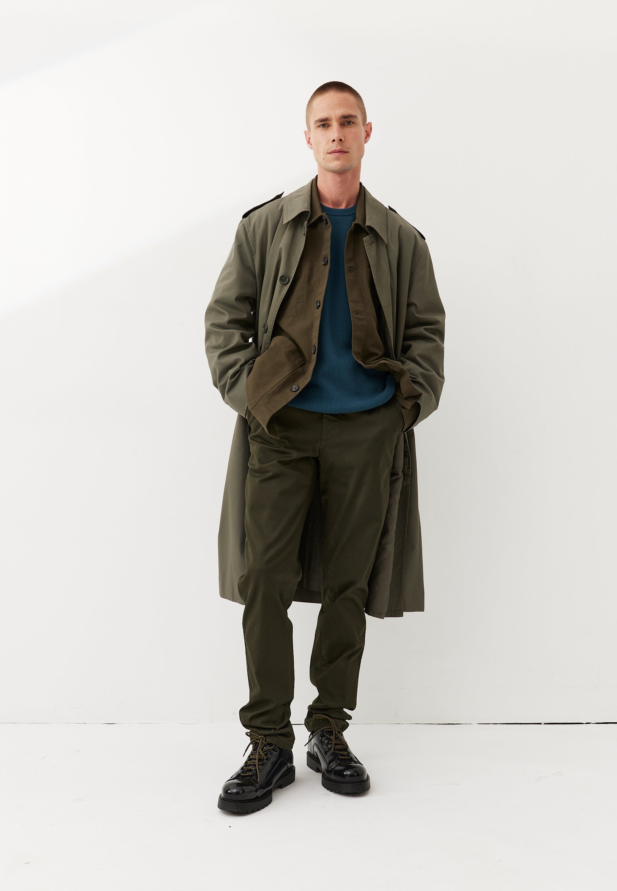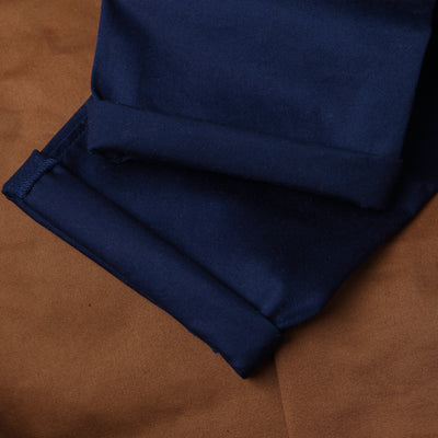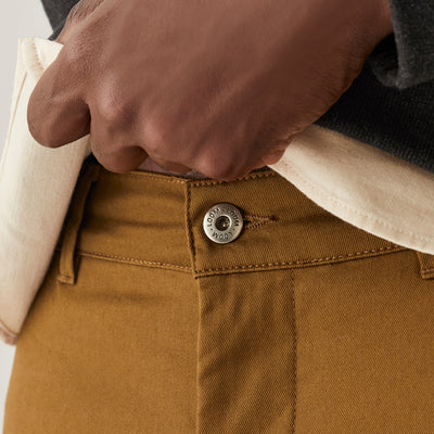 Avec ce tissu en coton teint dans les Vosges, on a réussi à limiter les problèmes habituels des chinos : notre pantalon décolore moins grâce à la "mercerisation" du coton, et se déforme peu grâce à l'ajout d'un fil "Lycra T400". Mais il a aussi du style : les couleurs sont profondes, et sa coupe semi-slim est le fruit d’années d’ajustements avec nos clients. Quelle que soit votre morphologie, on est à peu près sûrs qu’il vous fera de belles jambes.