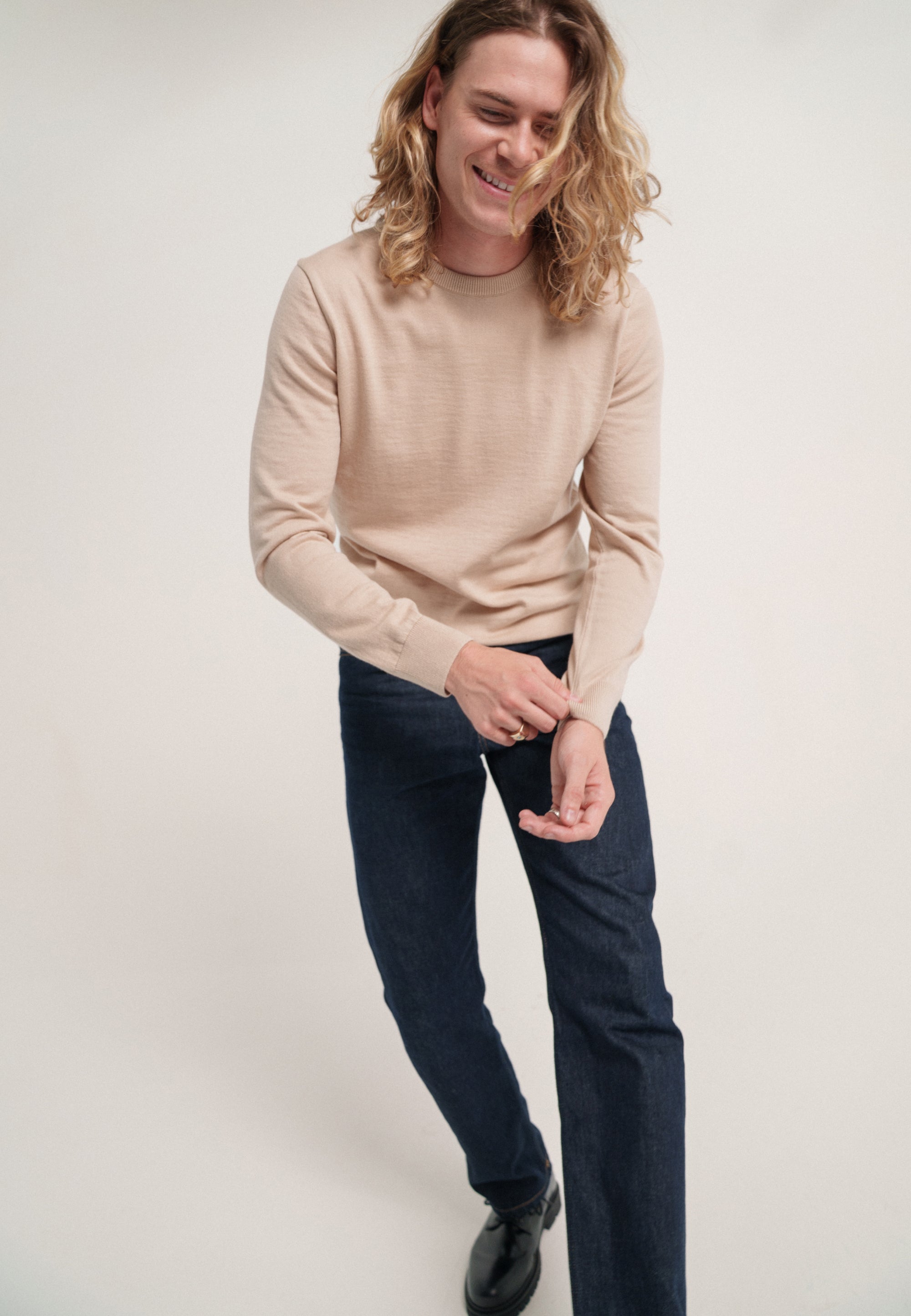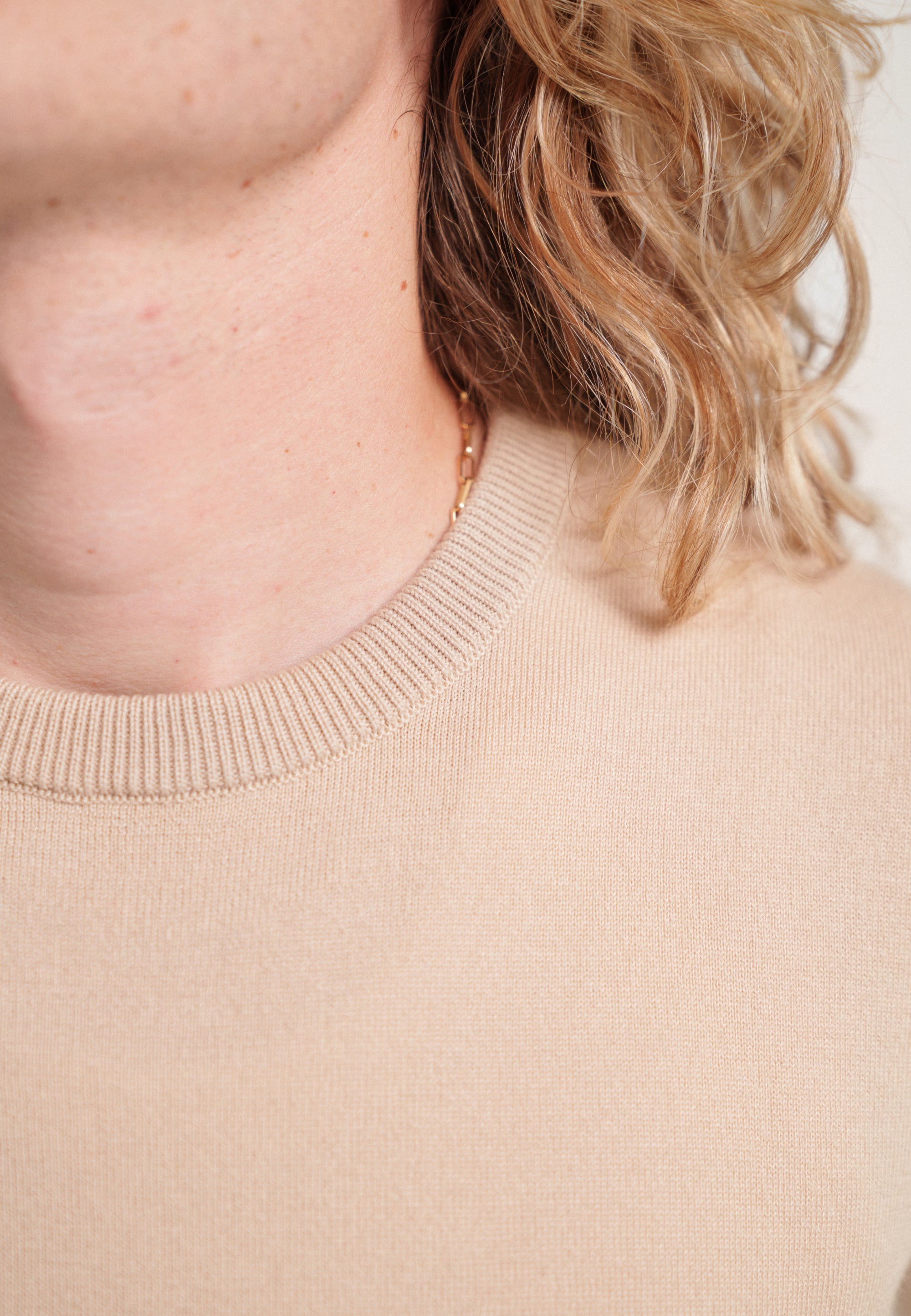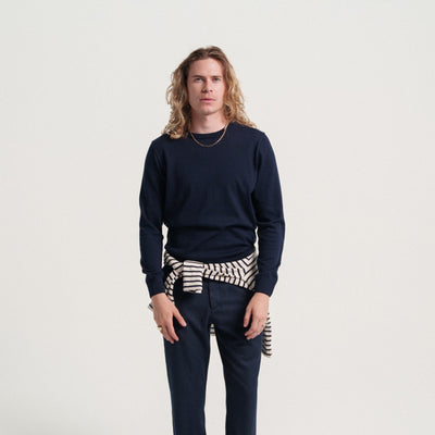 Un pull fin 100% laine, c’est beau et doux, mais ça se troue aux coudes. Un pull fin 100% coton, c’est résistant mais ça se déforme et ça ne tient pas très chaud. En optant pour un mélange de laine mérinos extrafine et de coton bio, on a réuni le meilleur des deux mondes : douceur, chaleur, résistance aux trous et à la déformation.
