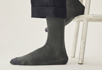 « Elles sont 15 fois plus solides que des chaussettes classiques » – c’est le verdict du laboratoire qui a testé nos chaussettes. Leur secret ? Des renforts à la pointe et au talon en Cordura, un fil issu du monde militaire très résistant à l’abrasion. Pour le reste, nos chaussettes sont en fil d'Écosse, un coton mercerisé doux et résistant, avec un joli élastique en structure "nid d'abeilles" pour ne pas vous étrangler le mollet. Fabriquées dans le Tarn par une équipe d'experts passionnés qui ont pris le temps de travailler avec nous sur ces chaussettes d'exception.