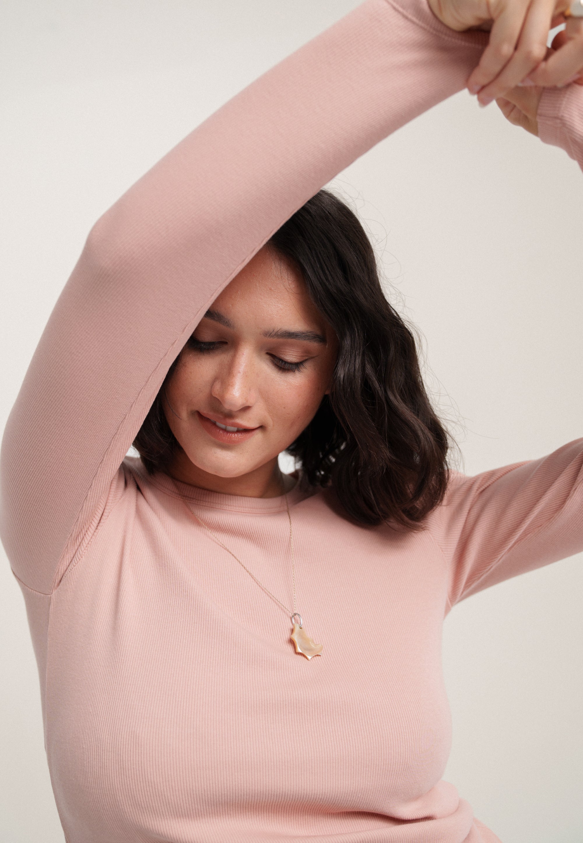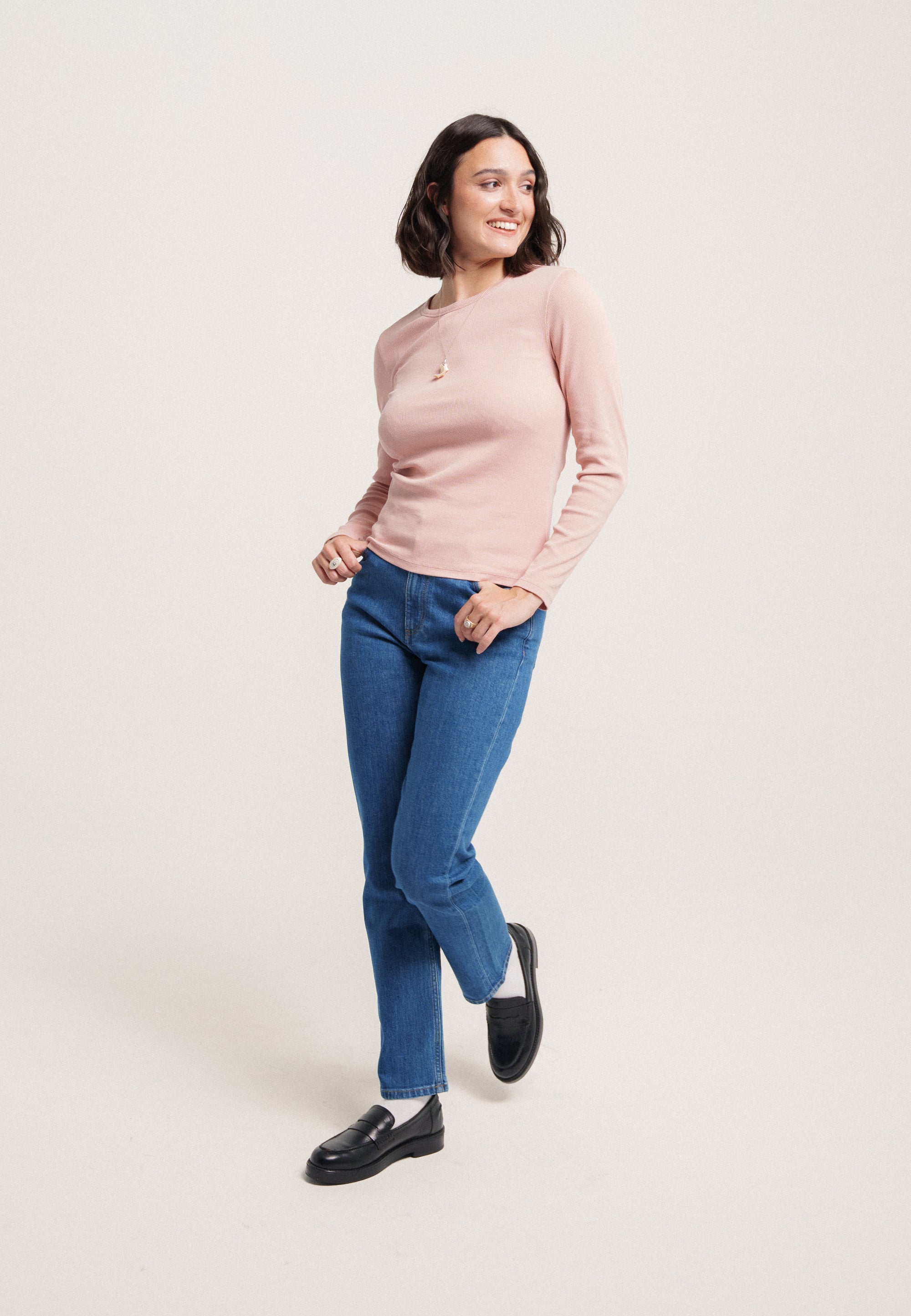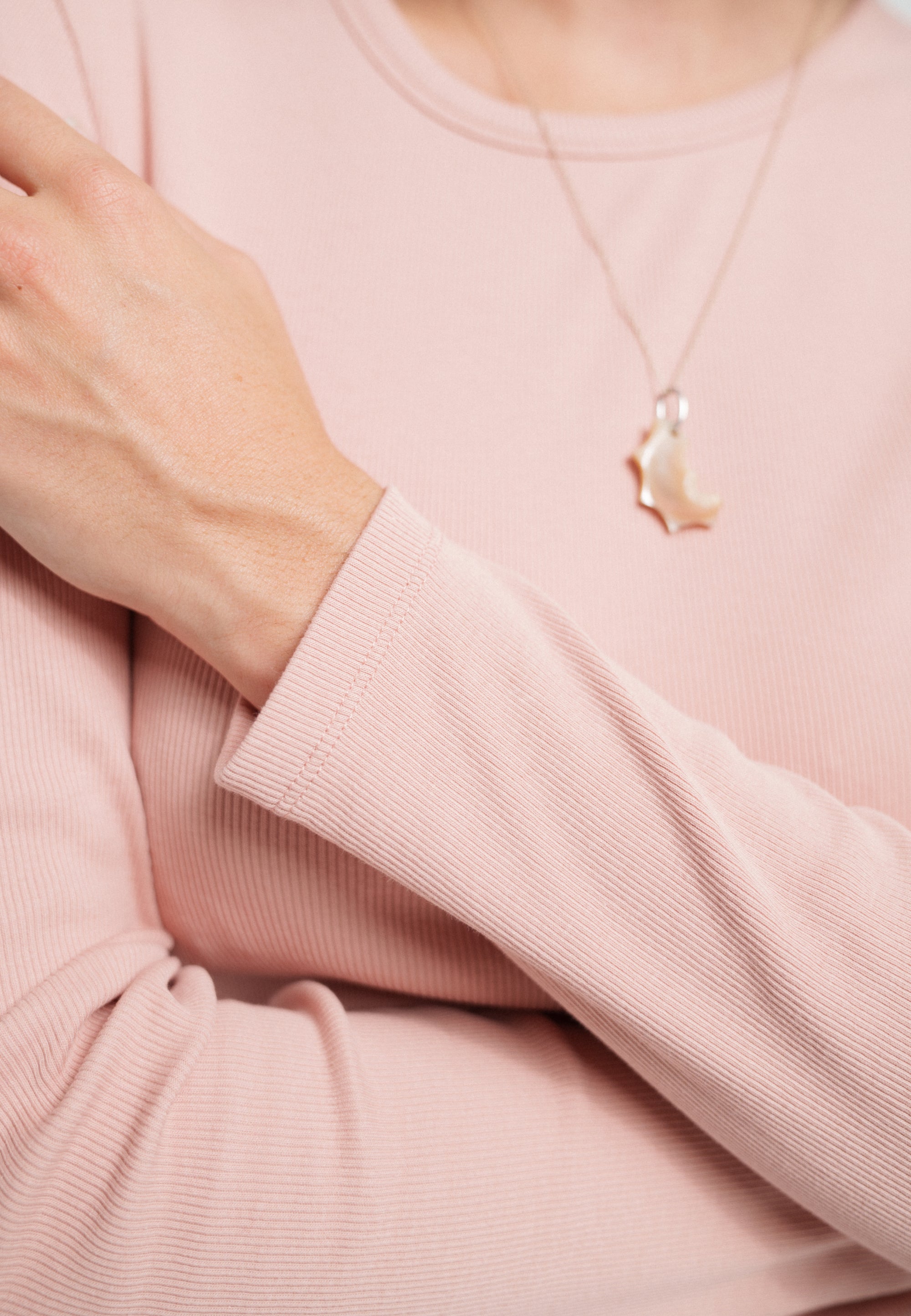 C’est la première génération de notre t-shirt manches longues, mais on ne part pas de zéro : on a repris la même matière que notre débardeur côtelé (étudiée pour ne pas se déformer).