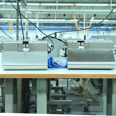 Pour s’assurer que les boutons ne se décousent pas, on a utilisé une machine Ascolite, qui renforce le montage en entourant le pied du bouton d’un fil supplémentaire soudé à chaud.