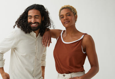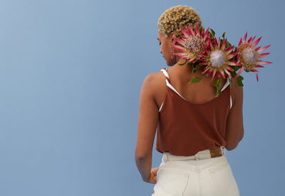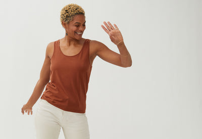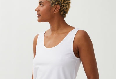 Du Tencel (une fibre produite à partir de pulpe de bois) pour un toucher frais et un joli tombé, du coton (bio) pour la tenue et un fil d'élasthanne pour éviter qu’il se déforme avec les années : trois ingrédients qui donnent une matière belle, confortable et solide pour notre débardeur. Côté coupe, on a pris en compte les retours de nos premières clientes pour développer une forme près du corps mais pas moulante. Pour ne rien sacrifier, ni au confort, ni au style.