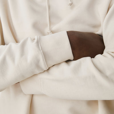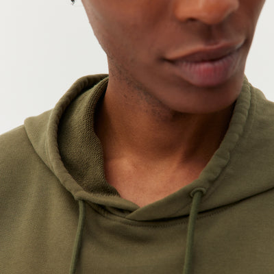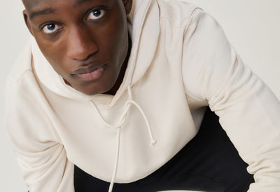 Vous nous avez remonté que le principal problème de vos sweats à capuche, c’est la déformation. On a donc choisi une densité de maille de 420g/m2 suffisamment lourde pour limiter la détente. Et après avoir retourné le problème dans tous les sens, on a supprimé la poche kangourou : avec un tissu 100% coton, cette poche finit toujours par se détendre et bailler.