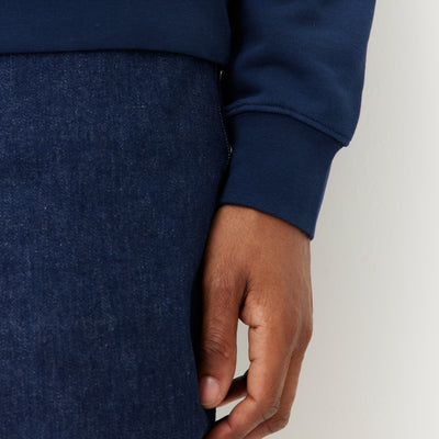 Notre sweat écru n’est pas teint : il a la couleur naturelle du coton tel qu’il a été récolté dans les champs. Et ça change tout. Parce que teindre des vêtements nécessite 1) plein de produits chimiques 2) beaucoup d’eau et 3) de l’énergie pour la chauffer. Bilan : on minimise le risque de rejets toxiques, on épuise moins les nappes phréatiques et on réduit de 15% ses émissions de gaz à effet de serre. Et en plus, cette couleur est canon, non ?