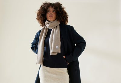Cette écharpe est 100% laine : cette fibre emprisonne près de 80 % d'air, ce qui en fait le meilleur isolant naturel. Elle est suffisamment longue pour faire deux tours de cou et on a choisi un point dense en “maille perlée” pour que l’air froid n’atteigne jamais votre gorge.