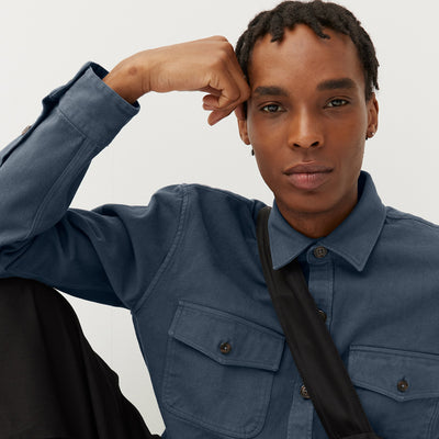 Le twill, c’est un tissu particulièrement robuste dont l’armure dessine un motif en diagonale – comme pour les jeans par exemple. Avec ce twill fabriqué dans les Vosges, ses deux poches à rabat et sa couleur légèrement patinée, cette surchemise a un petit côté workwear qui vous donnera un look décontracté (et conviendra parfaitement à votre flegme naturel).