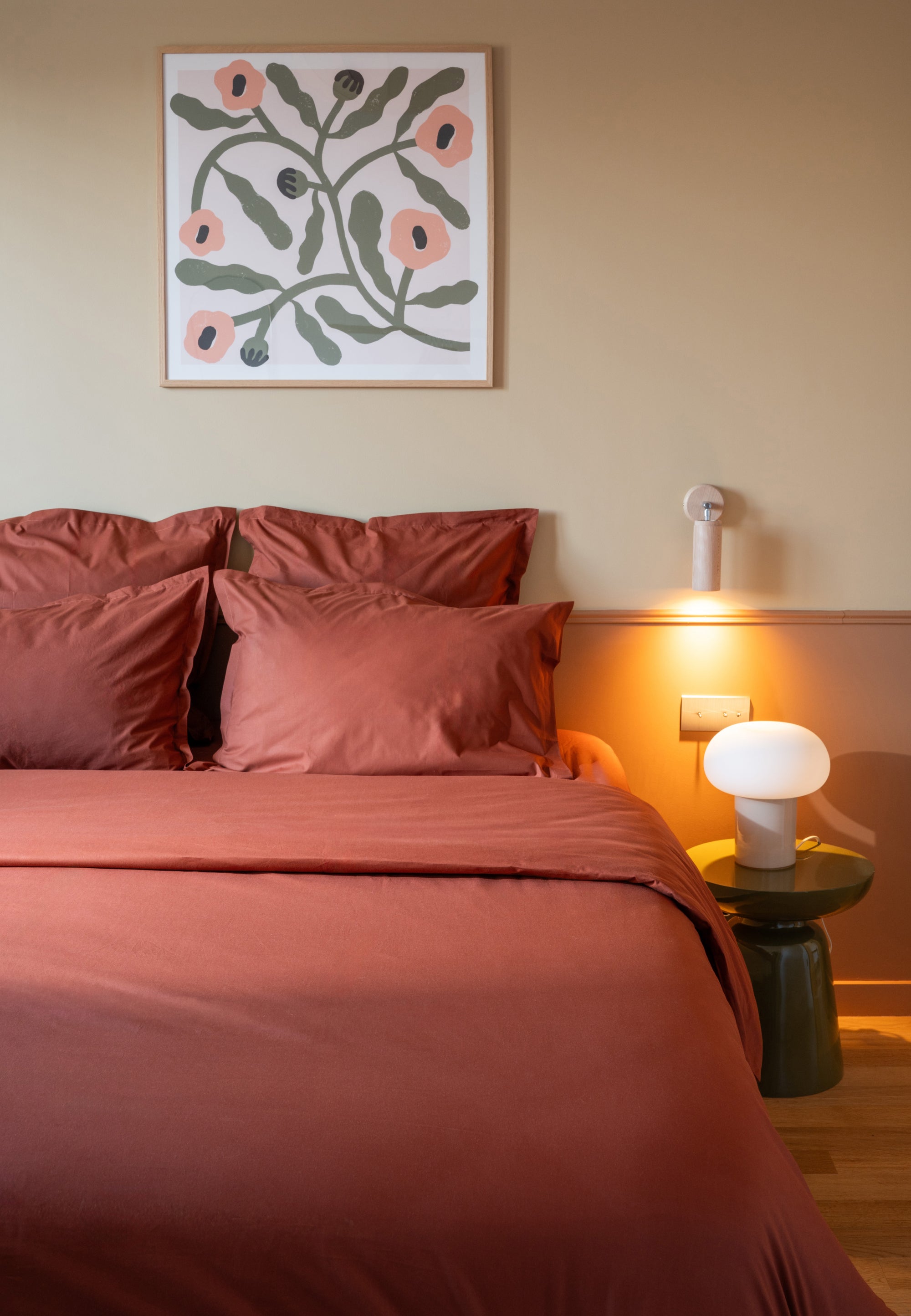 - Percale de coton : ce type de tissage, plutôt classique pour les draps haut-de-gamme, est plus respirant que le satin et donne un rendu plus mat
