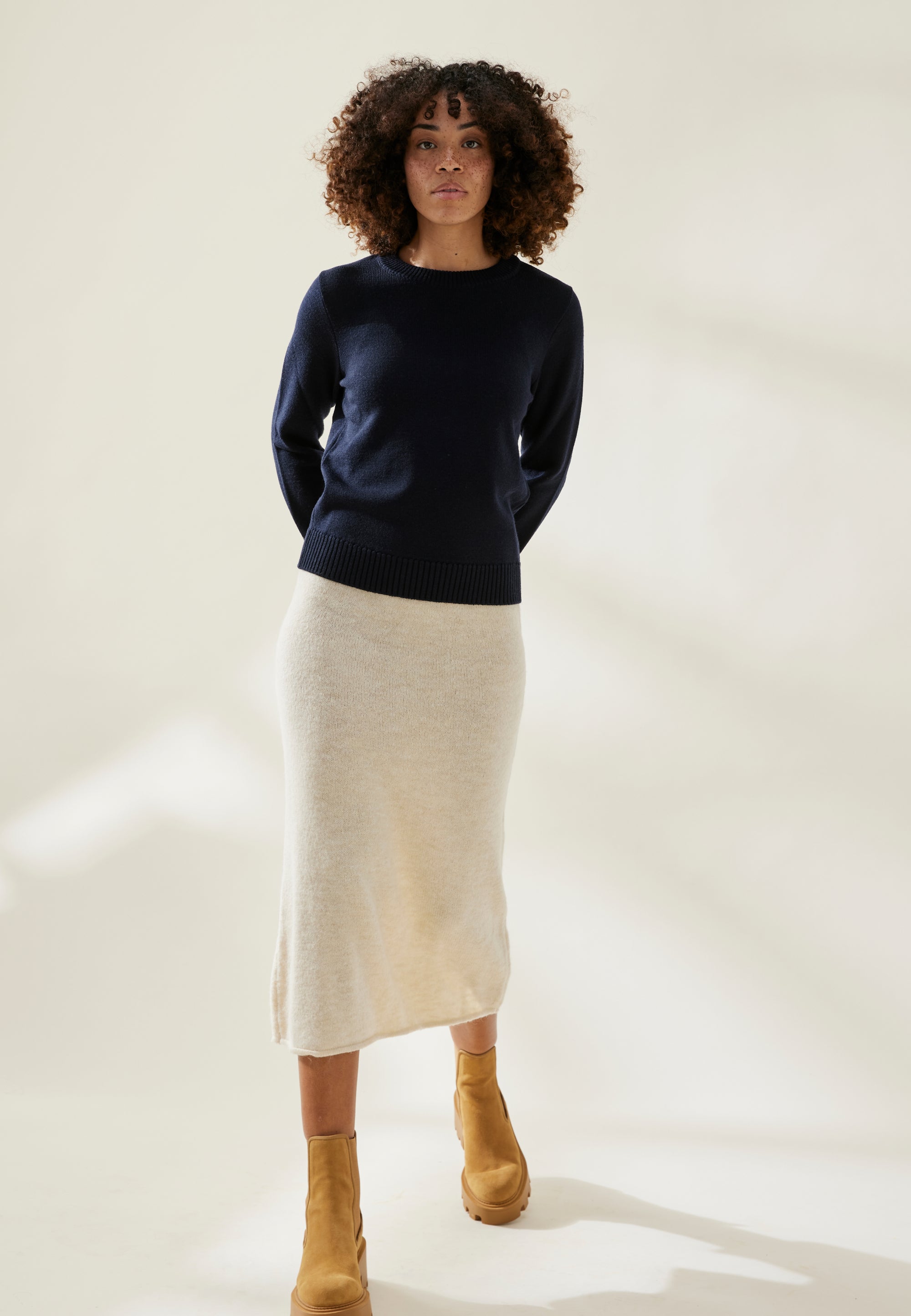 C’est la toute première génération du pull classique femme. Pour le construire, on s’est appuyé sur les retours d’expérience du pull chaud femme et du pull épais homme, notamment sur le choix de la laine.