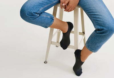 On a étudié la forme des socquettes pour qu’elles soient juste assez hautes pour ne pas glisser des talons et se faire la malle sous votre pied. On a aussi choisi une gomme élastique made in Troyes, de qualité pour que ça tienne dans le temps.