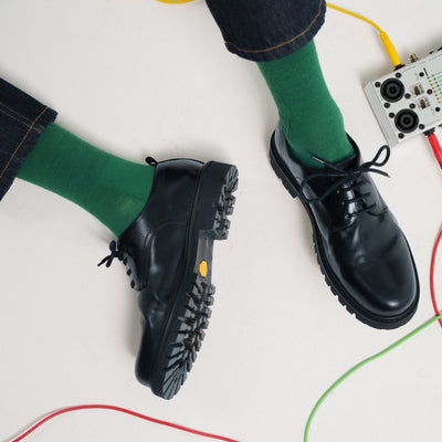 C’est la première génération de nos derbies, mais on ne part pas de zero : on a utilisé tout le savoir accumulé grâce à nos baskets (qu’on vend depuis 2020) sur le cuir, le taillant, la résistance des semelles, etc. Et puis on a porté nous-même ce modèle pendant plusieurs mois pour s’assurer qu’il est au niveau.
