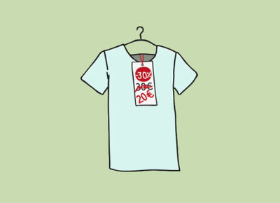 Nos prix sont les mêmes toute l'année. Aujourd’hui, un vêtement sur deux est vendu en soldes ou en promo. Contrairement à leur vocation d’origine, les prix barrés ne servent plus à déstocker : ils sont juste devenus une façon de vous faire acheter plus.