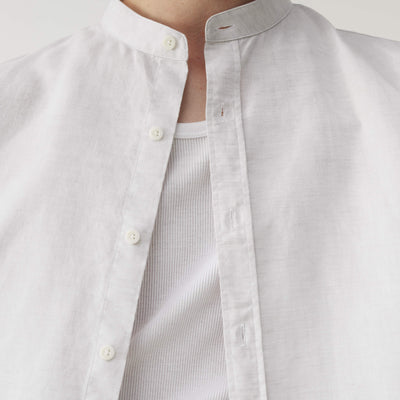 L’avantage du col officier, c’est qu’il peut se porter ouvert pour un look décontracté, ou fermé quand l'élégance est de rigueur. Et avec ce tissu en mélange de lin français et de coton, vous aurez le meilleur des deux mondes : de la texture et de la respirabilité, du confort et de la solidité.