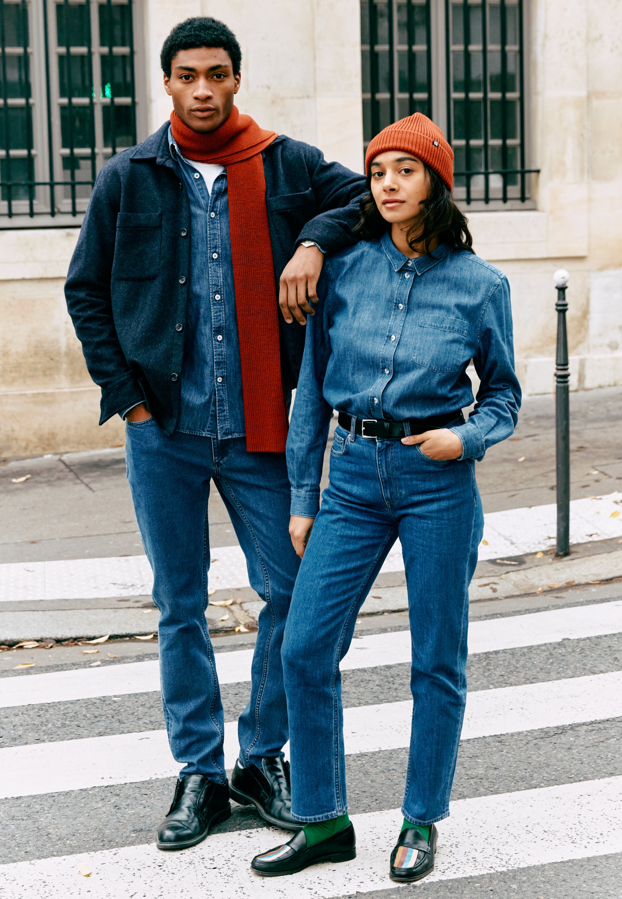 Pour cette chemise en jean, on a déniché un beau denim italien 100% coton bio, décliné en deux nuances : le bleu “stone” comme dans les westerns, et le “bleached” délavé qui va avec tout. Oui, cette chemise est belle, mais elle est aussi robuste : le tissu est dense (235g/m2), les boutons sont épais et leur fixation est renforcée.