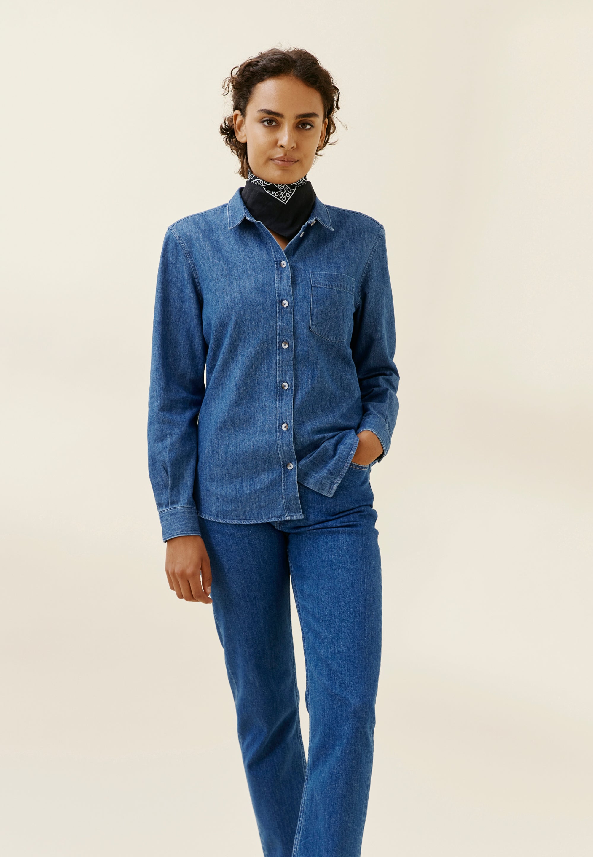 C’est la première génération de notre chemise en jean femme, mais on ne part pas de zéro : on est parti de la coupe de notre chemise oxford et du tissu du modèle homme.