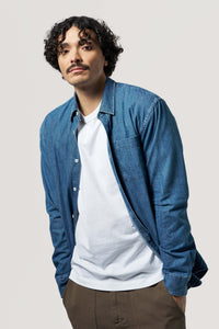 Taillée dans un beau denim italien, cette chemise se patinera joliment avec les années (comme un jean). Certes elle est belle, mais elle est aussi robuste : le tissu est dense (235g/m2), les boutons sont épais et leur fixation est renforcée.