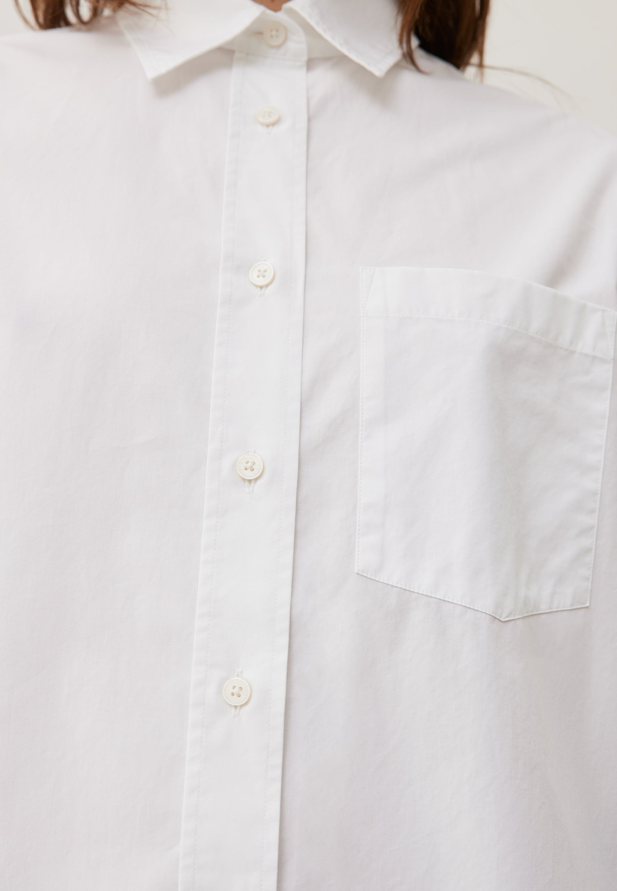 C’est la première génération de notre chemise en popeline, et elle ne ressemble pas aux autres chemises qu’on a développées jusqu’ici : la coupe est un peu plus oversize et la matière un peu plus fine.