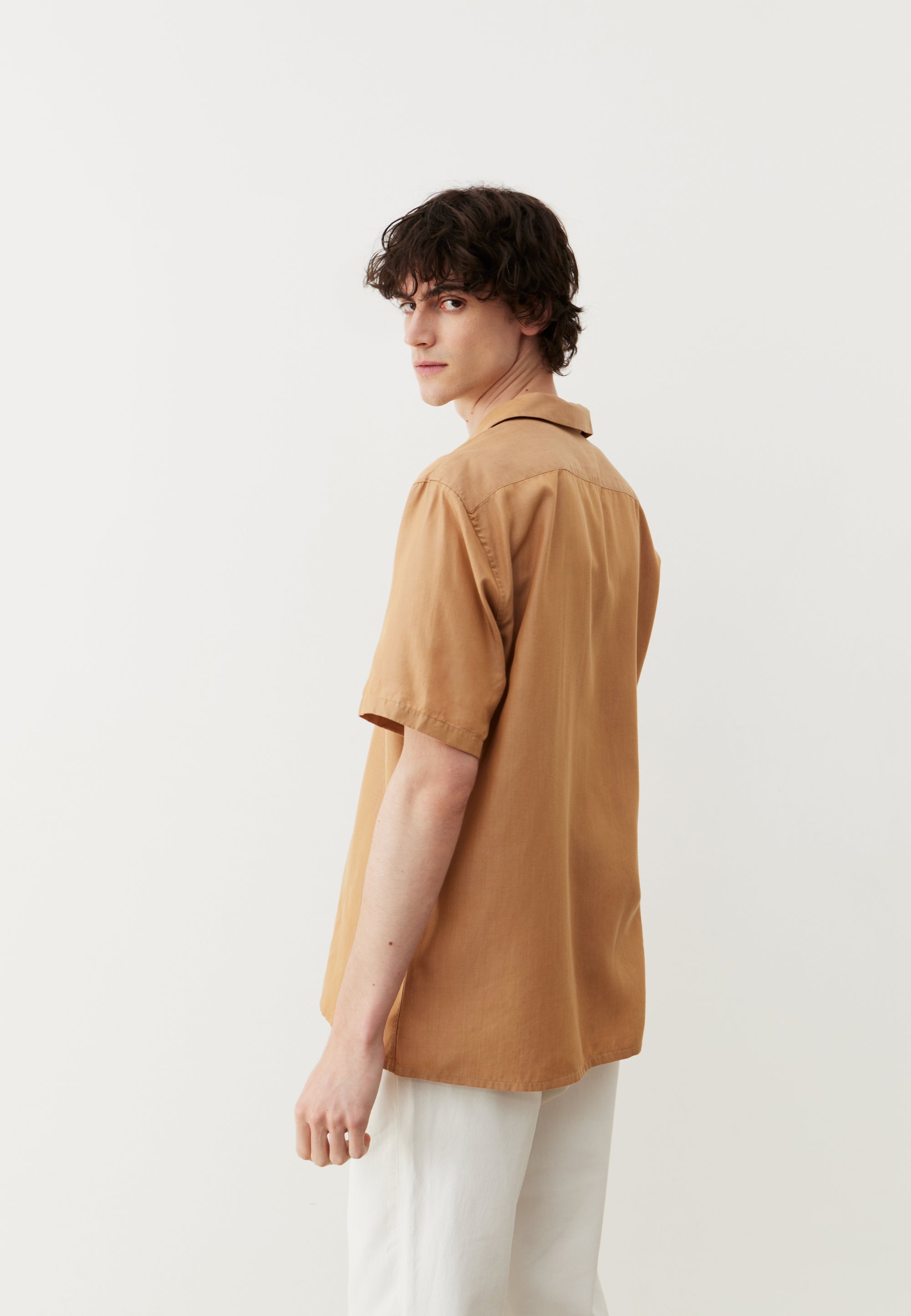 Le Tencel a certains désavantages, mais qu’on a pense avoir réussi à contourner. D’abord, comme cette matière est un peu brillante, on l’a mélangée avec du Tencel recyclé pour lui donner un côté plus mat. Ensuite, le Tencel crée des petites fibrilles avec le temps sur le tissu. Pour les rendre moins visibles, on a teint le fil (et non le tissu) pour lui donner un peu d’irrégularités. Vous n’y perdrez pas au change : ces minuscules fibrilles participent à donner de la douceur au tissu. Plus vous laverez cette chemisette, plus elle sera agréable à porter.