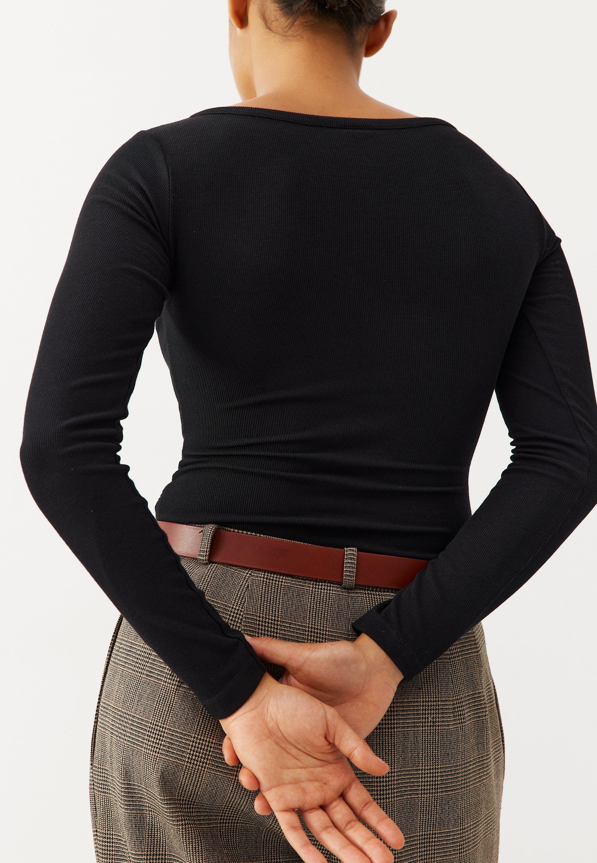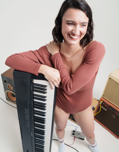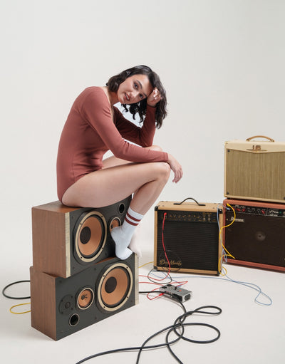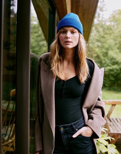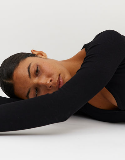 Un body manches longues pour se sentir comme dans un cocon, grâce au “modal”, une fibre ultra-douce faite à partir de pulpe de bois. Et qui met en valeur : matière légèrement gainante, épaules ouvertes mais pas tombantes, encolure échancrée avec 3 boutons pour la souligner. Et promis, on a bien bossé : aucune détente ni bouloche en perspective. Par contre, gros risque de chantonner I wanna rock your body en l’enfilant.