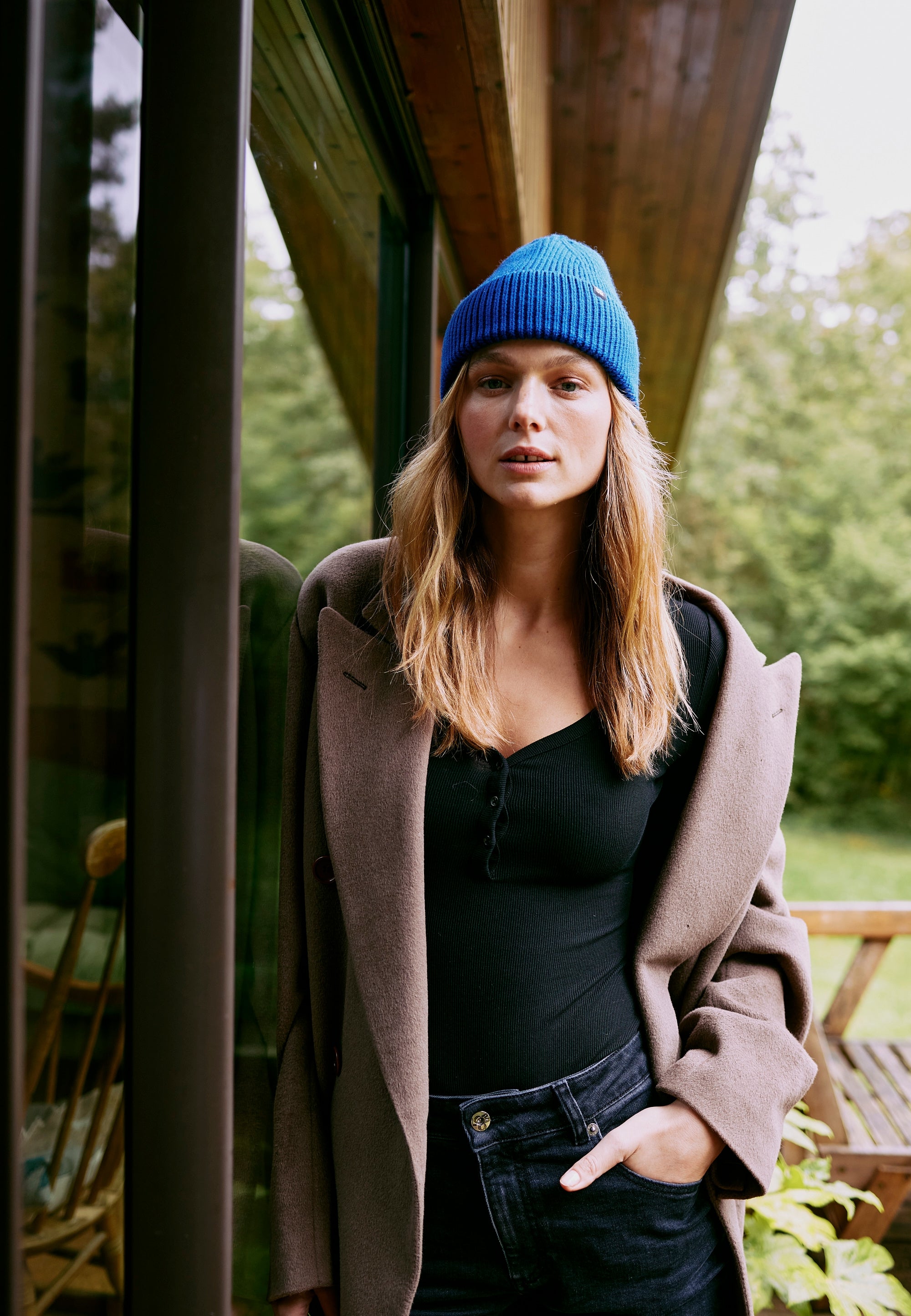 - Tricotage en côte 2:2, un point naturellement élastique pour épouser la forme du corps
