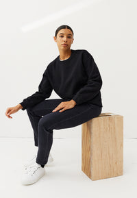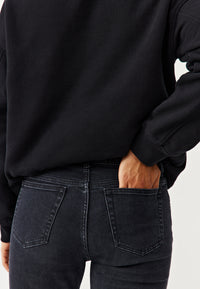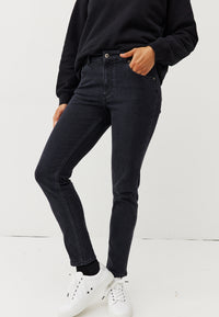 Un jean en coton bio qui fait son boulot de slim (bien souligner les fesses et les jambes), solide grâce à son tissu dense et qui reste confortable avec ses grandes poches et sa taille qui remonte jusque sous le nombril.