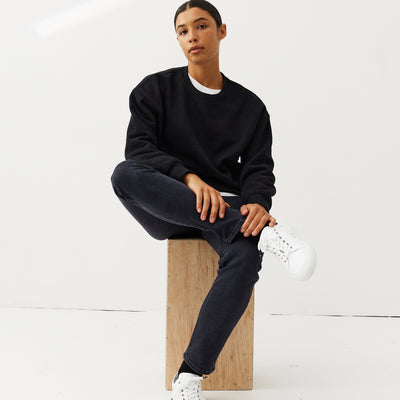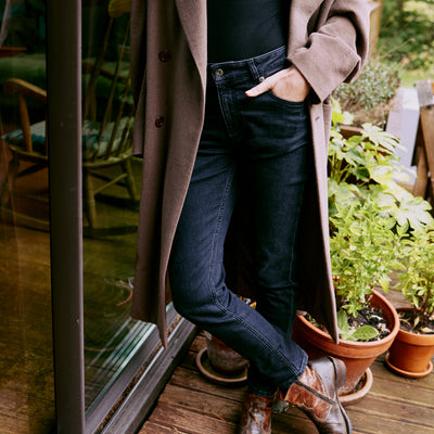 Pour ce jean, on a développé une coupe slim classique (si vous l’aimez moins ajustée, jetez un œil à notre jean droit) qui remonte un peu en dessous du nombril, dans un tissu confortable (grâce à sa pointe d'élasthanne). Bonne nouvelle numéro : il ne se détend quasiment pas - c’est sans doute ce qui fait que vous le garderez longtemps.